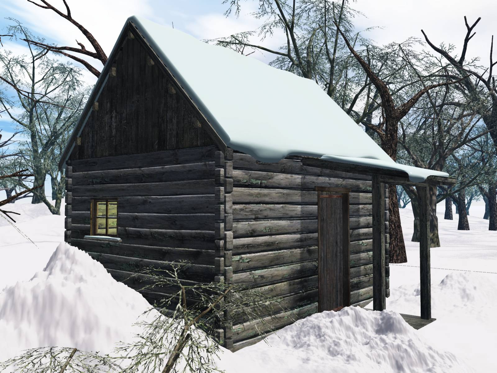 Das Bild hat eine schöne Atmosphäre. Der Schee auf dem Boden sieht schon sehr realistisch aus und ist fast nicht mehr zu toppen. Jedoch gefällt mir die Farbe des Schees auf dem Dach der Hütte nicht. Dieser sollte ebenfalls mehr weiss mit einigen dunkleren Stellen sein. Wie dem auch sei, ich denke das Bild kann sich so auch sehen lassen