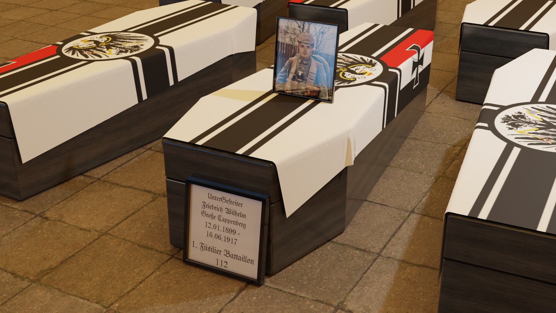 Während der Sommeroffensive im Sommer 1917 im Westen kamen viele Soldaten des deutschen Heeres ums Leben. Viele Tote konnten zwar geborgen werden waren aber bis zur Unkenntlichkeit verstümmelt. Ein Großonkel von mir wurde bei dieser Attacke getötet. ![]()