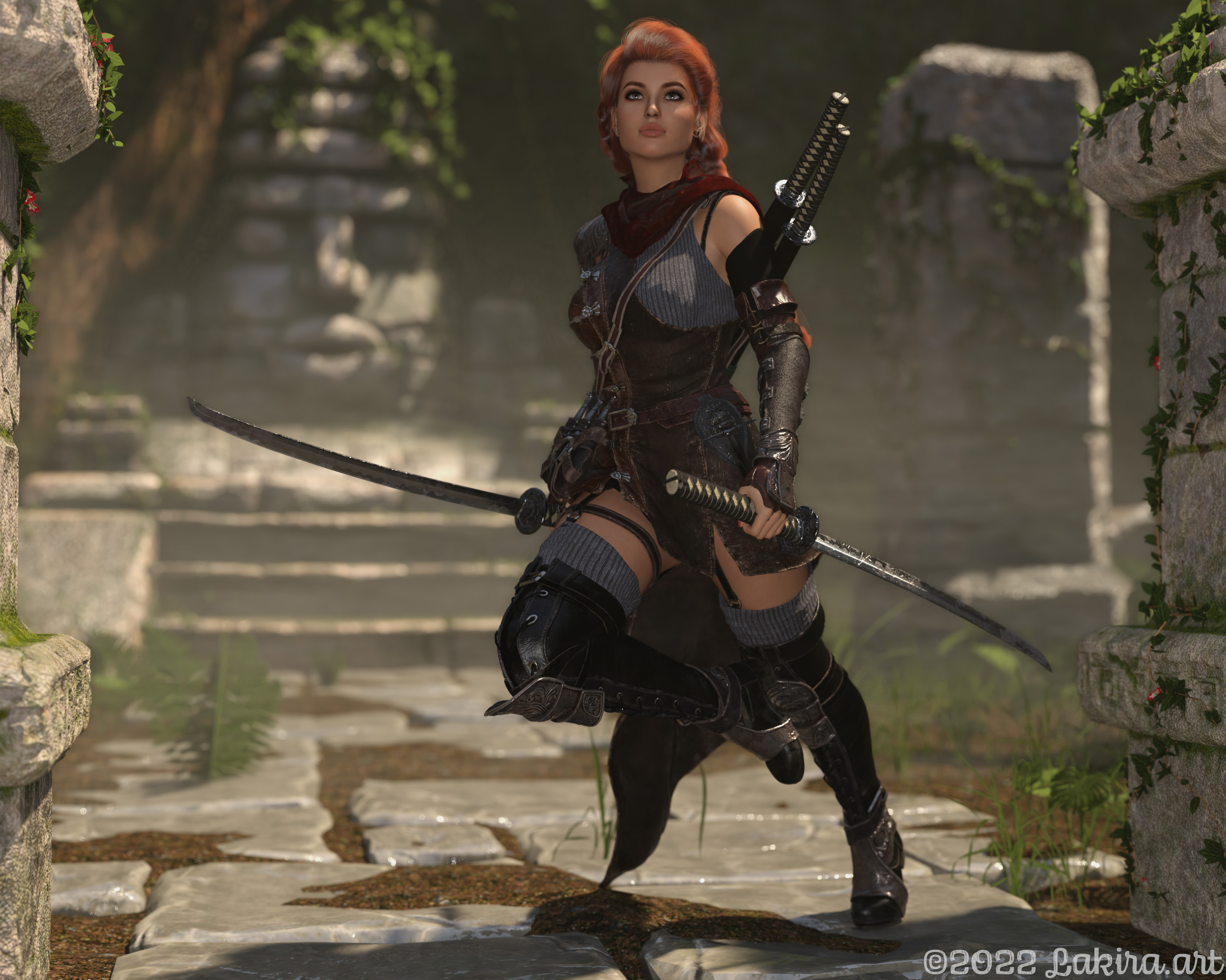 Ja, das Outfit ist nicht schlecht. - Ich frage mich nur gerade, ob die Haltung des linken Fusses durch die Bewegung bedingt ist, oder durch entsprechend hohe Absätze an den Stiefeln? - Die Pose ist ja so geschickt gewählt, dass man das auch am rechten Fuss nicht sehen kann.