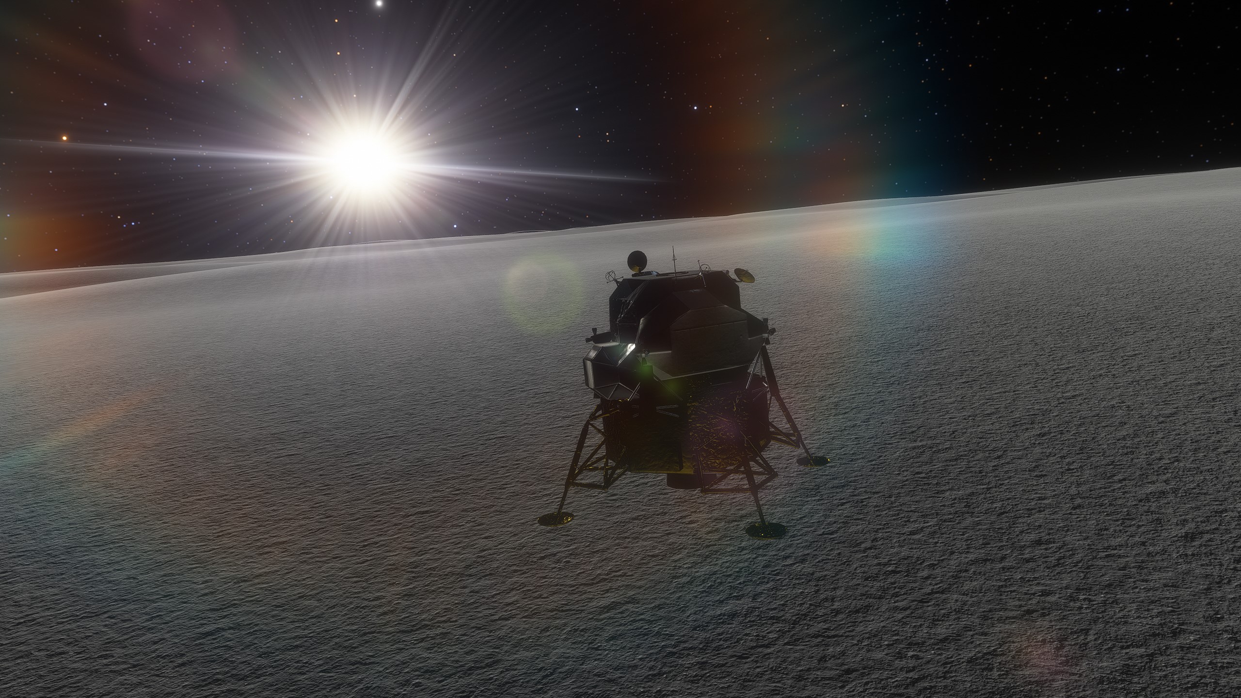 • Da man weder Footsteps noch Fahne sieht, scheint der Eagle grad erst gelandet zu sein. ;) Der Schatten fehlt, oder das Teil befindet sich noch weit über der Oberfläche.