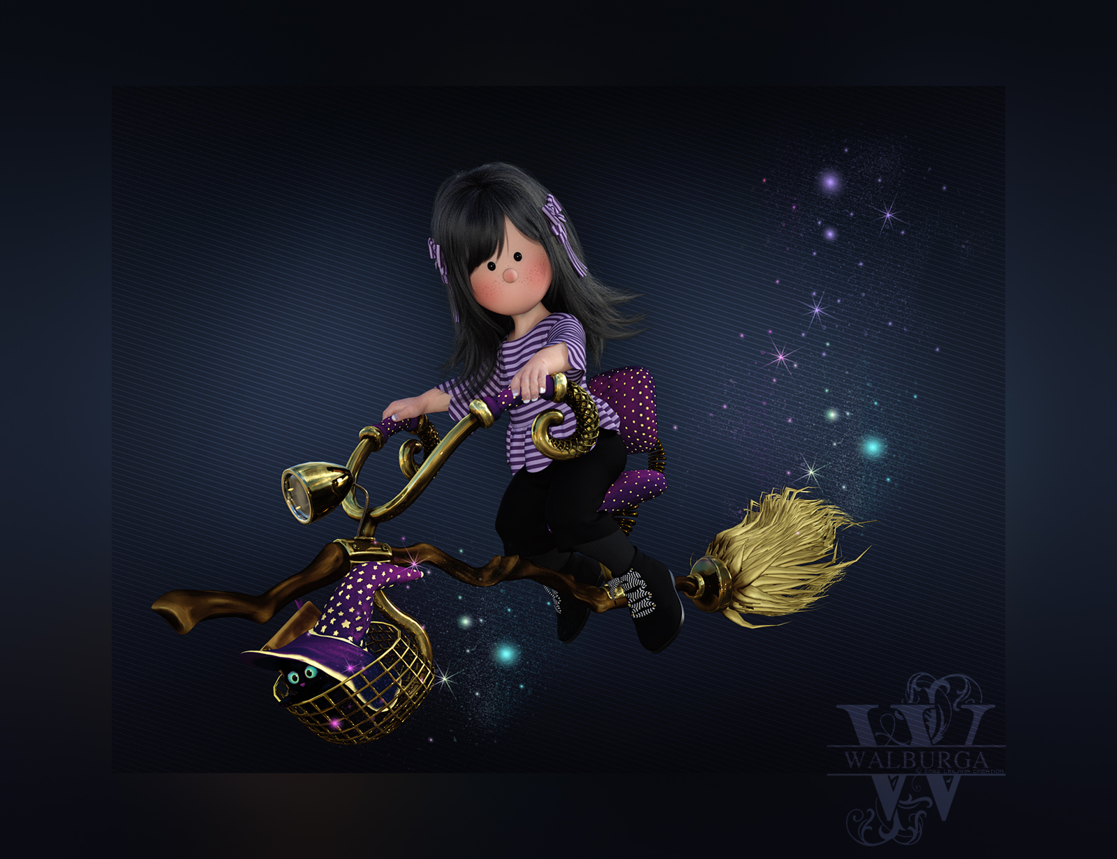 Hexlein startet den ersten Übungsflug für die Walpurgisnacht und den langen Flug auf den Blocksberg ... kleine Hexlein sind halt doch viel umweltbewusster ![]()