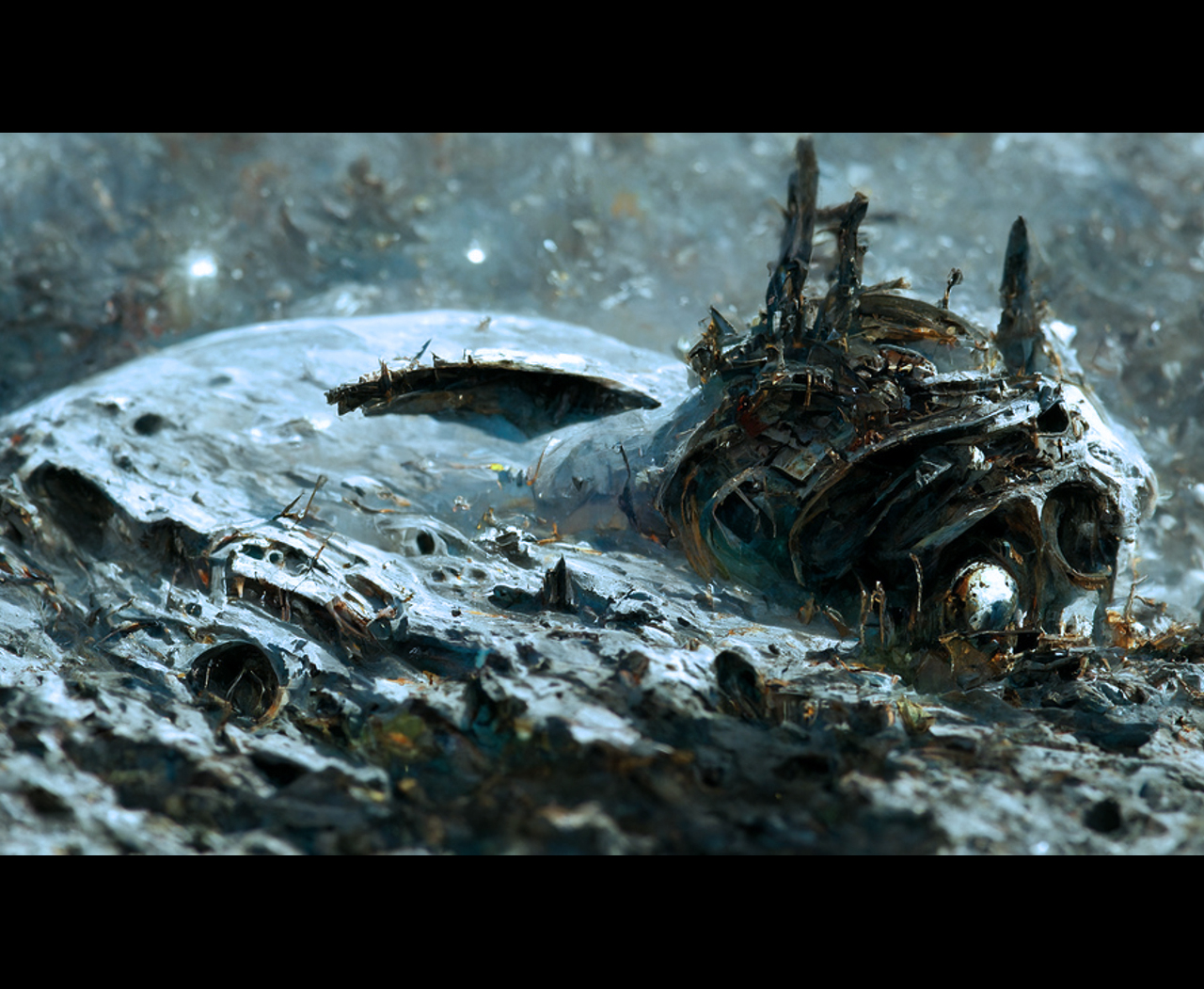 Wrack eines außerirdischen Raumschiffs auf der Mondoberfläche