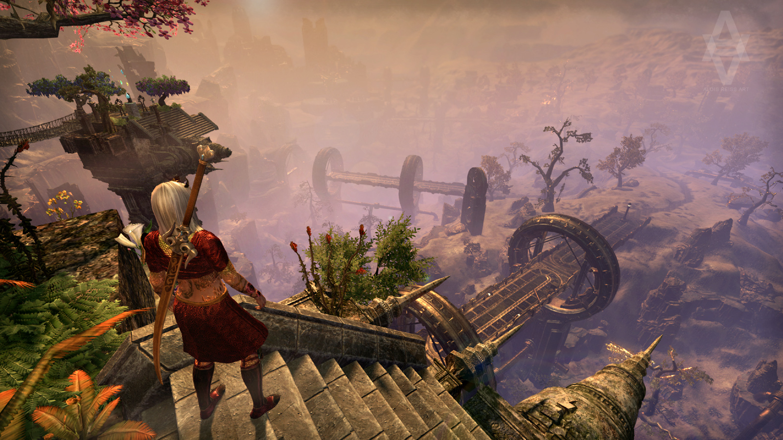 Meine Templer/Nord auf einer der von mir erstellten abstarkten schwebenden Plattform mit Bepflanzungen.