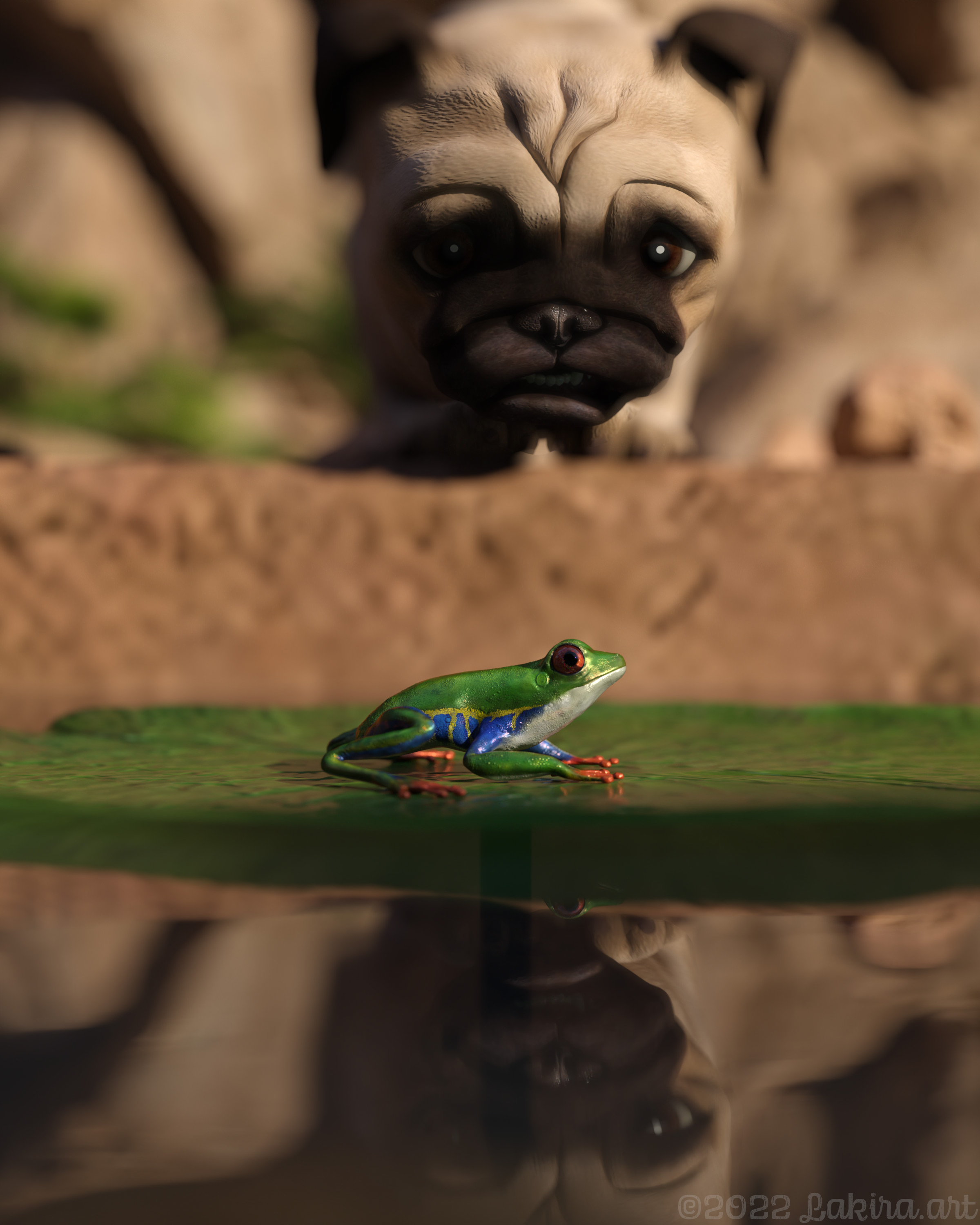 Oh schau her, der kleine Puggy hat was viel kleineres entdeckt.