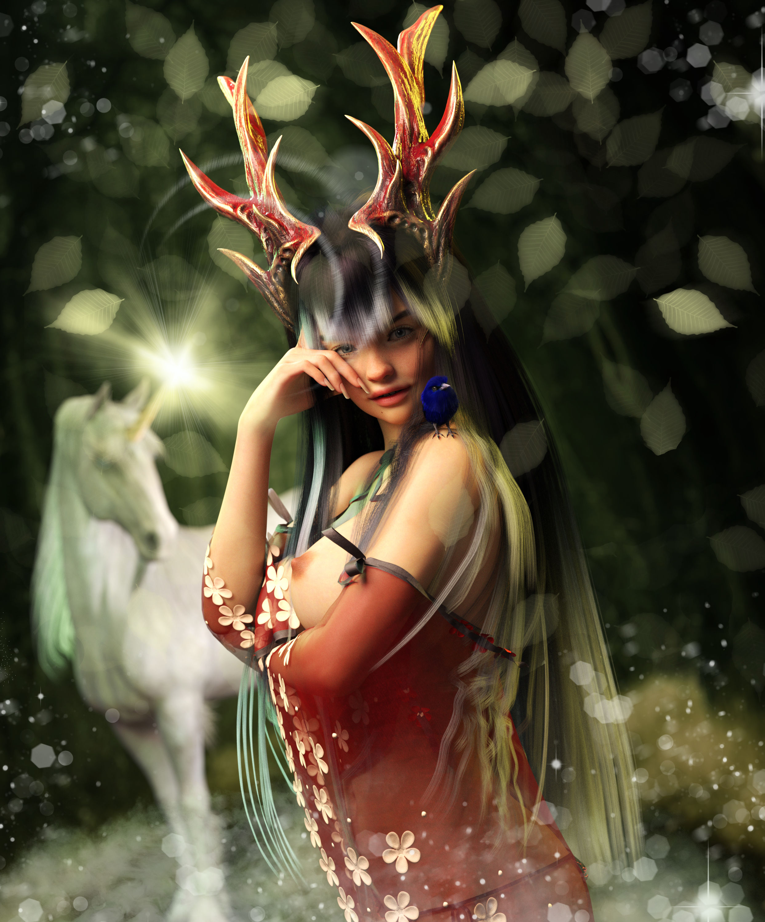 Gleich steigt sie auf das Einhorn und verschwindet im Wald.