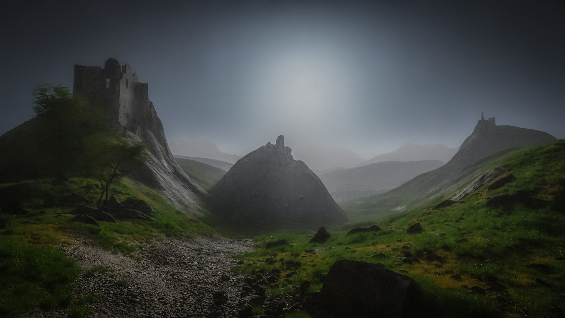 Also ich finde das super gelungen ! Gras, Steine im Vordergrund wirkt sehr natürlich . Die Ruinen passen super. Waren bestimmt mal Wachtürme.
