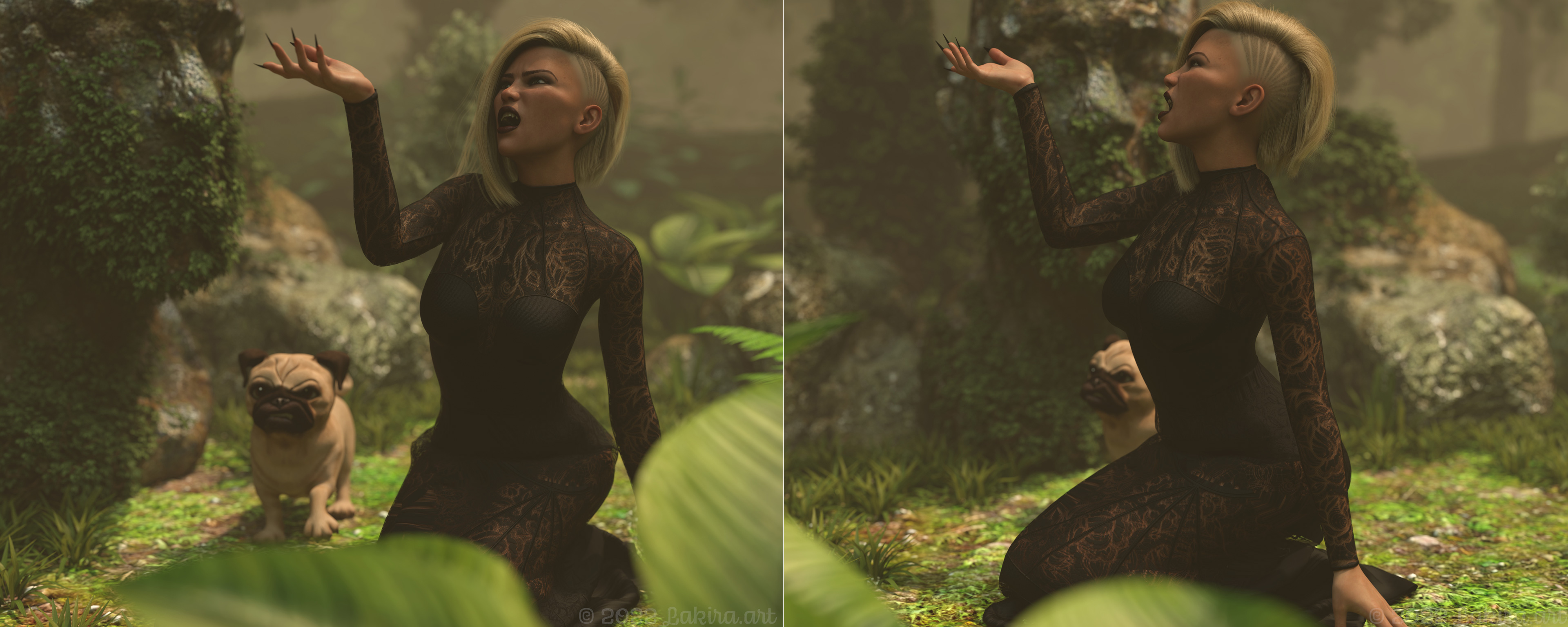 • Hm... - das kniet die Vampierlady also klagend dem Graf Puggy zu Füssen, und der Puggy im Bild ist nur ein Doppelgänger, oder wie? :/