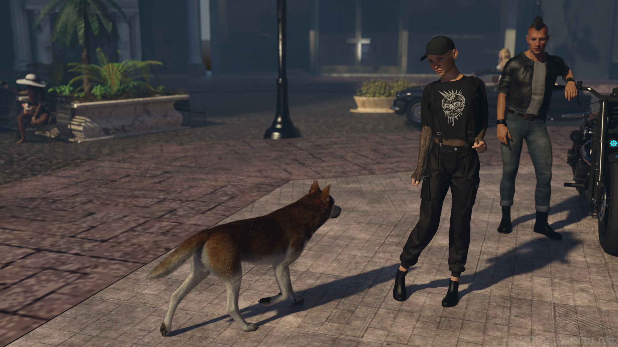 Oh ja. Der Husky gehört zu den Rockern. Die haben ja gerne Hunde bei sich.
