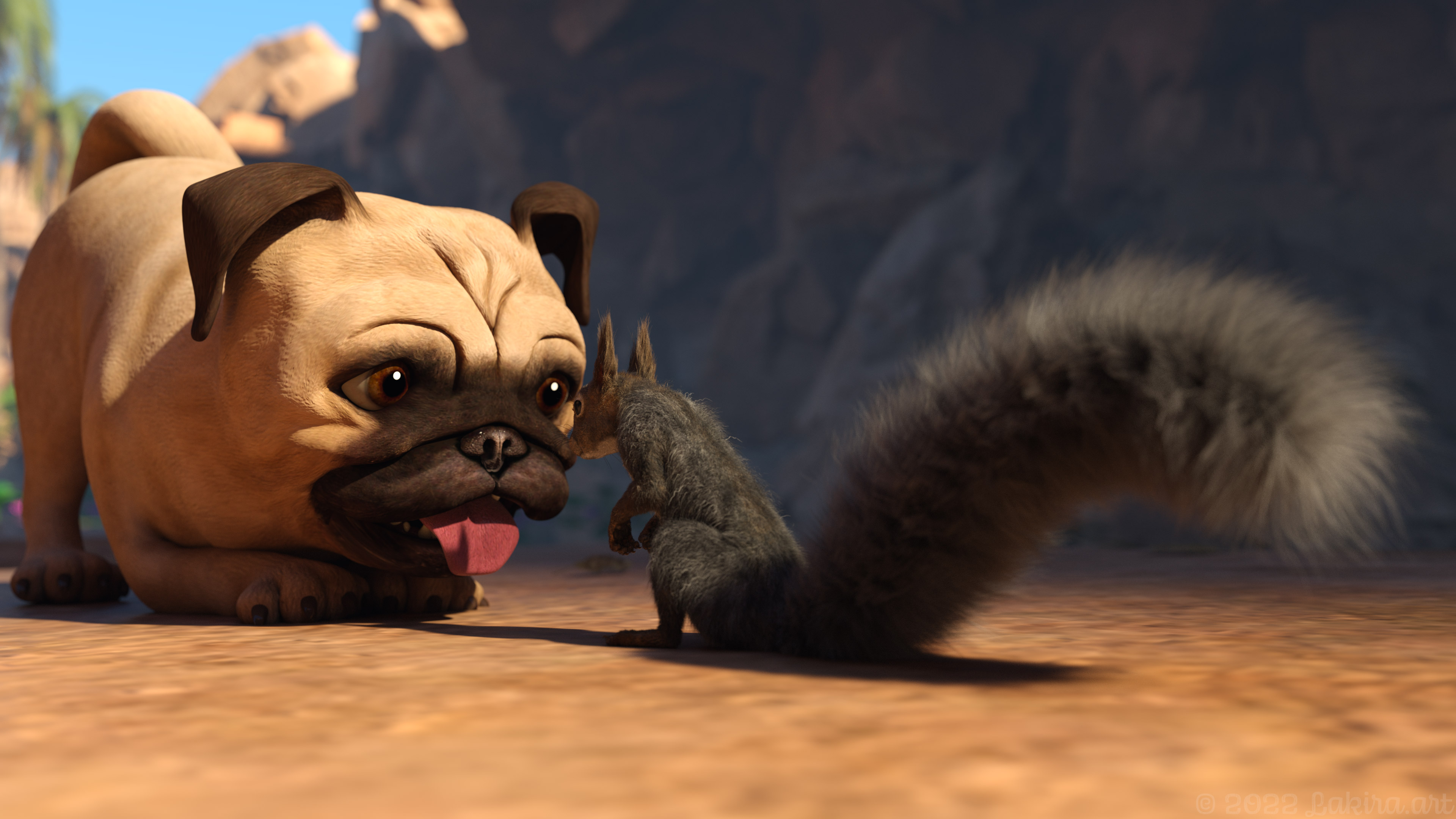 • Cool! - Das ist vor allem ein mutiges Eichhörnchen, das sich traut, dem Puggy so nah zu kommen. :)