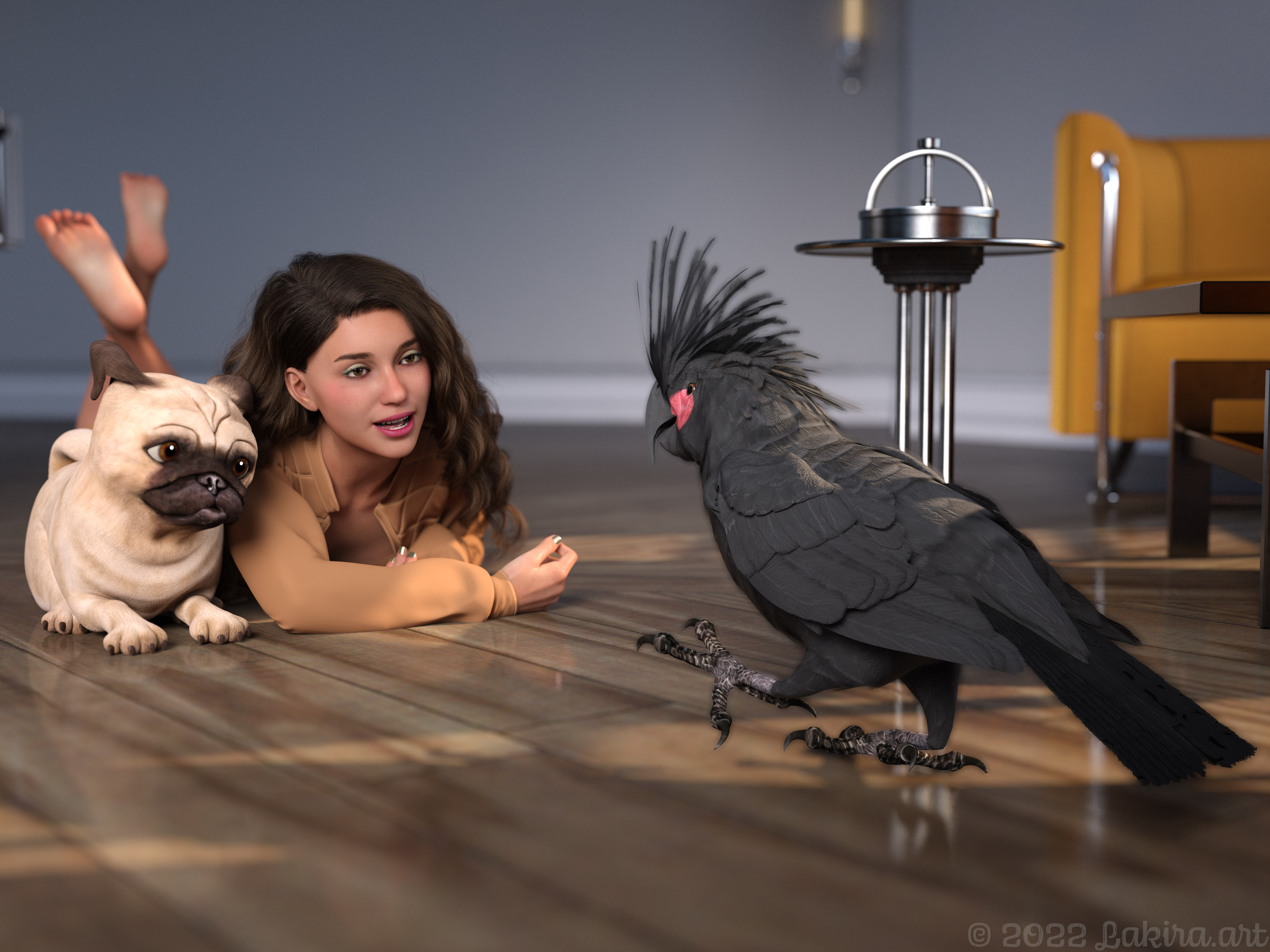 Interessant ist das der Puggy keine Blessuren mehr von den Krallen und dem Schnabel hat. 8) - Aber das wäre technisch wahrscheinlich nur schwierig bis gar nicht umsetzbar, denke ich mal. - Jedenfalls in DAZ; in Blender könnte man dem Hund die Blessuren verpassen...