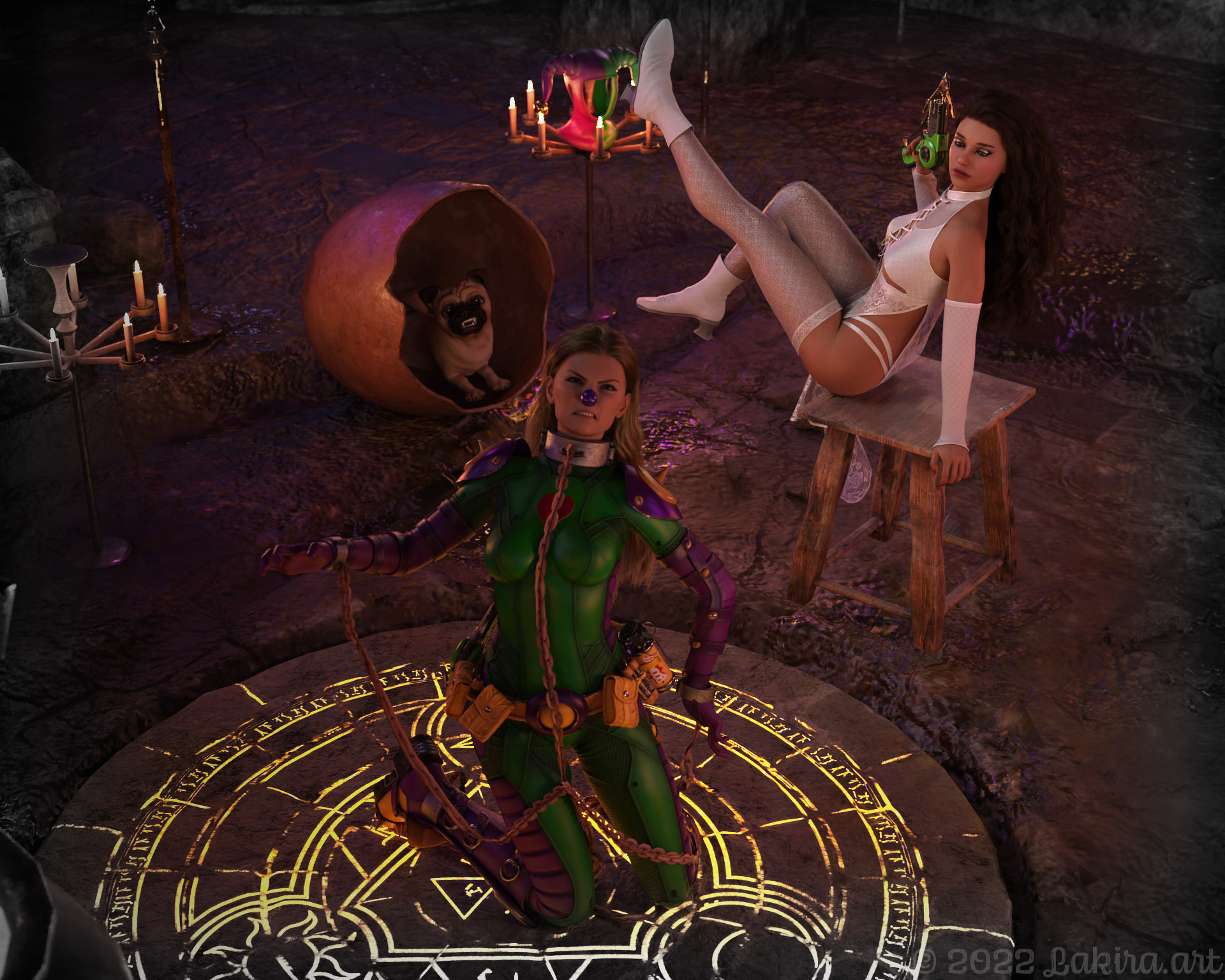 Jetzt stellt sich mir nur noch die Frage, was es mit dieser Scheibe auf sich hat, auf der sie die "Harlekina" angekettet hat? - Die sieht so verdächtig im Boden versenkbar aus und das was die "Harlekina" erwartet, wenn sie versenkt wird, dürfte nicht sehr schön sein. Ganz abgesehen davon, dass dieses Dreieck auch eine Art "magische Aura" zu haben scheint...