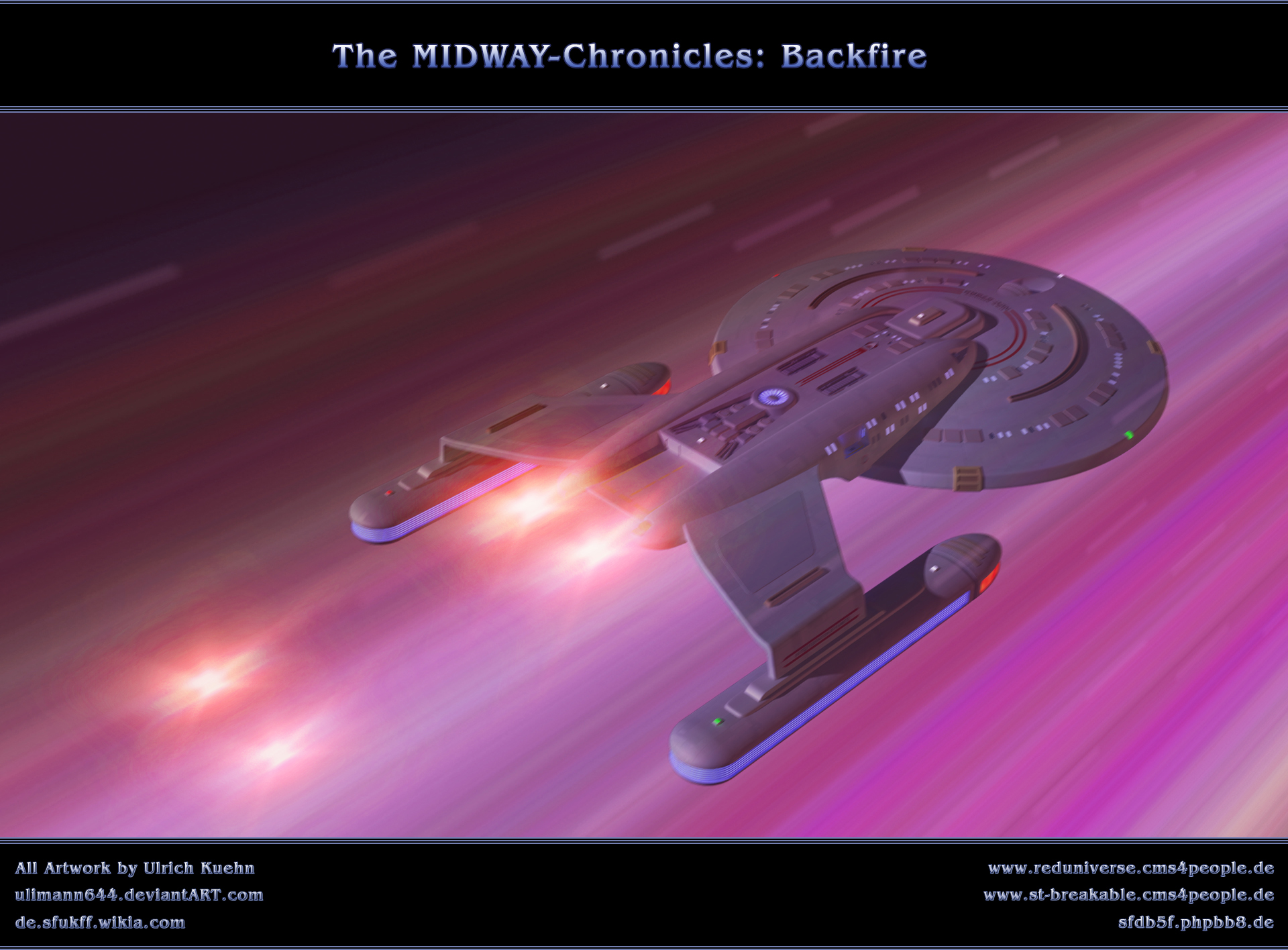 Diese Szene zeigt die von mir gebaute und nach einem Modell von Bernd Schneider entwickelte USS MIDWAY, ein Raumschiff der EXETER-KLASSE. Mindestens ein Raumschiff dieser Klasse nimmt in meiner Fan-Fiction "Die MIDWAY-Chronik" an der Schlacht von Wolf 359 teil.