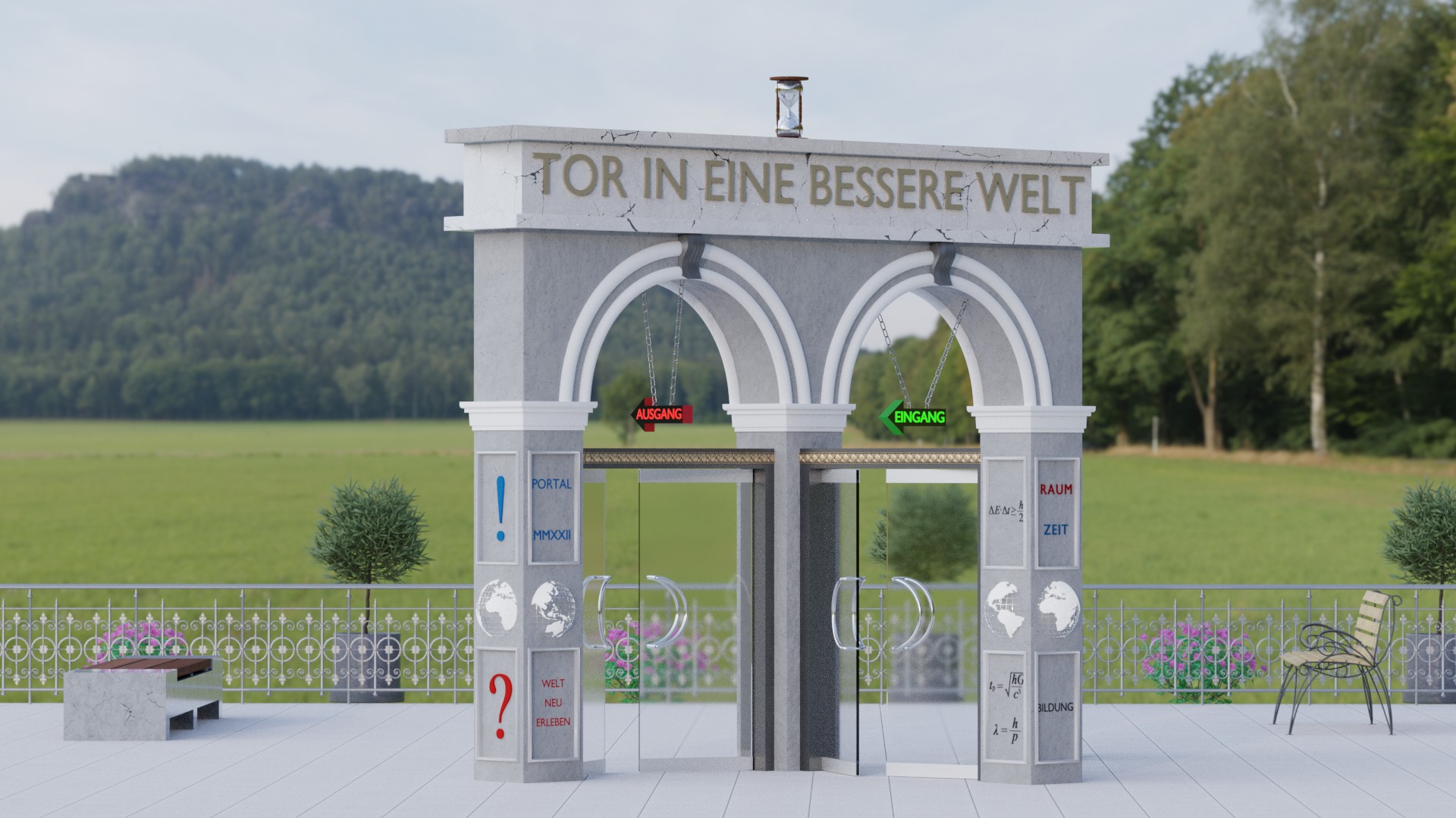 In letzter Zeit geht es in der Welt drüber unter drunter her. Wie kommt man aus dieser Situation raus? Dafür habe ich dieses Tor entwickelt, das in eine bessere Welt führen soll. Eigentlich unmöglich und doch steht es jetzt hier (zumindest digital).