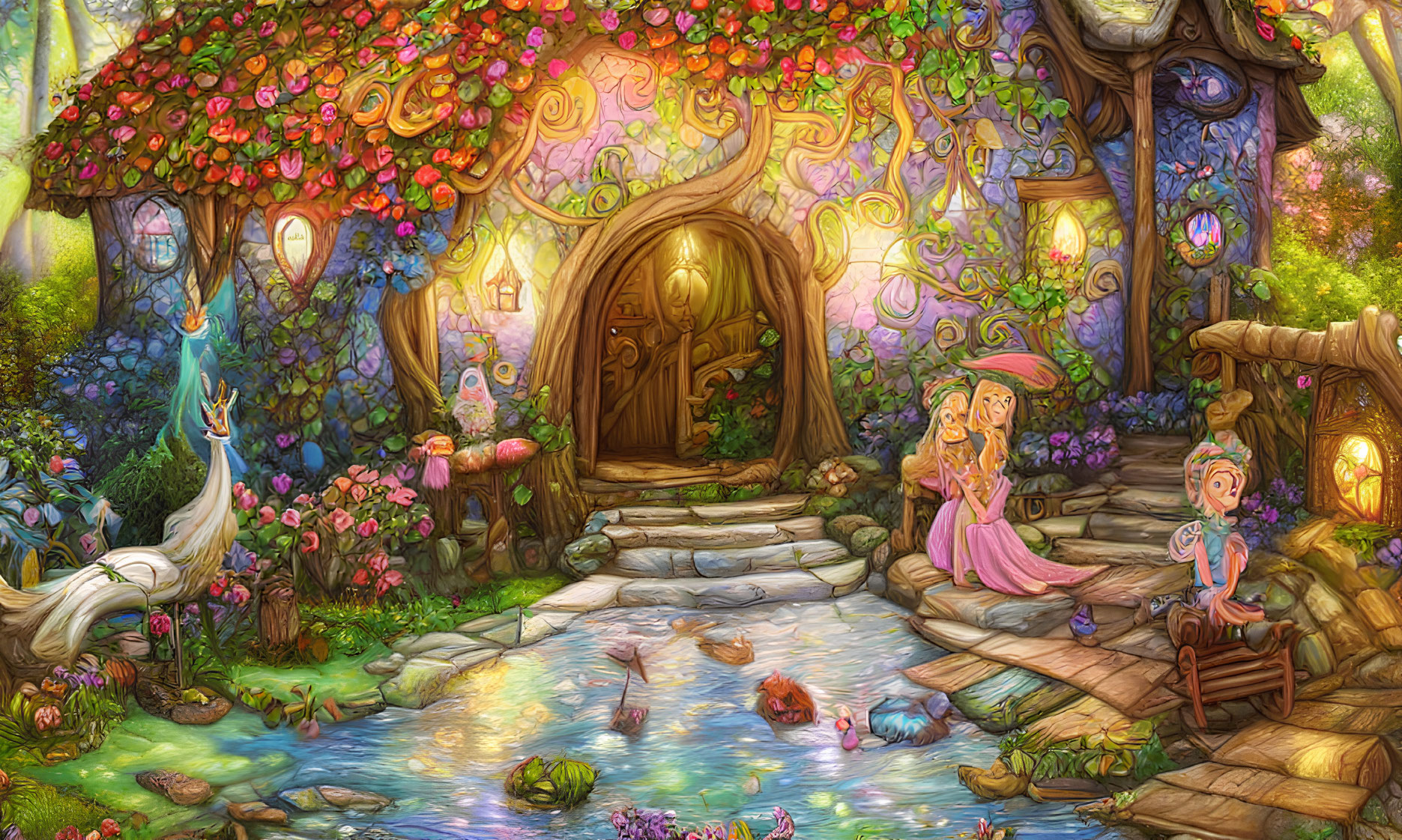 Aus vielen Blumen und Pflanzen bestehendes Haus der Feen, wie es in einem schönen Märchen vorkommt.