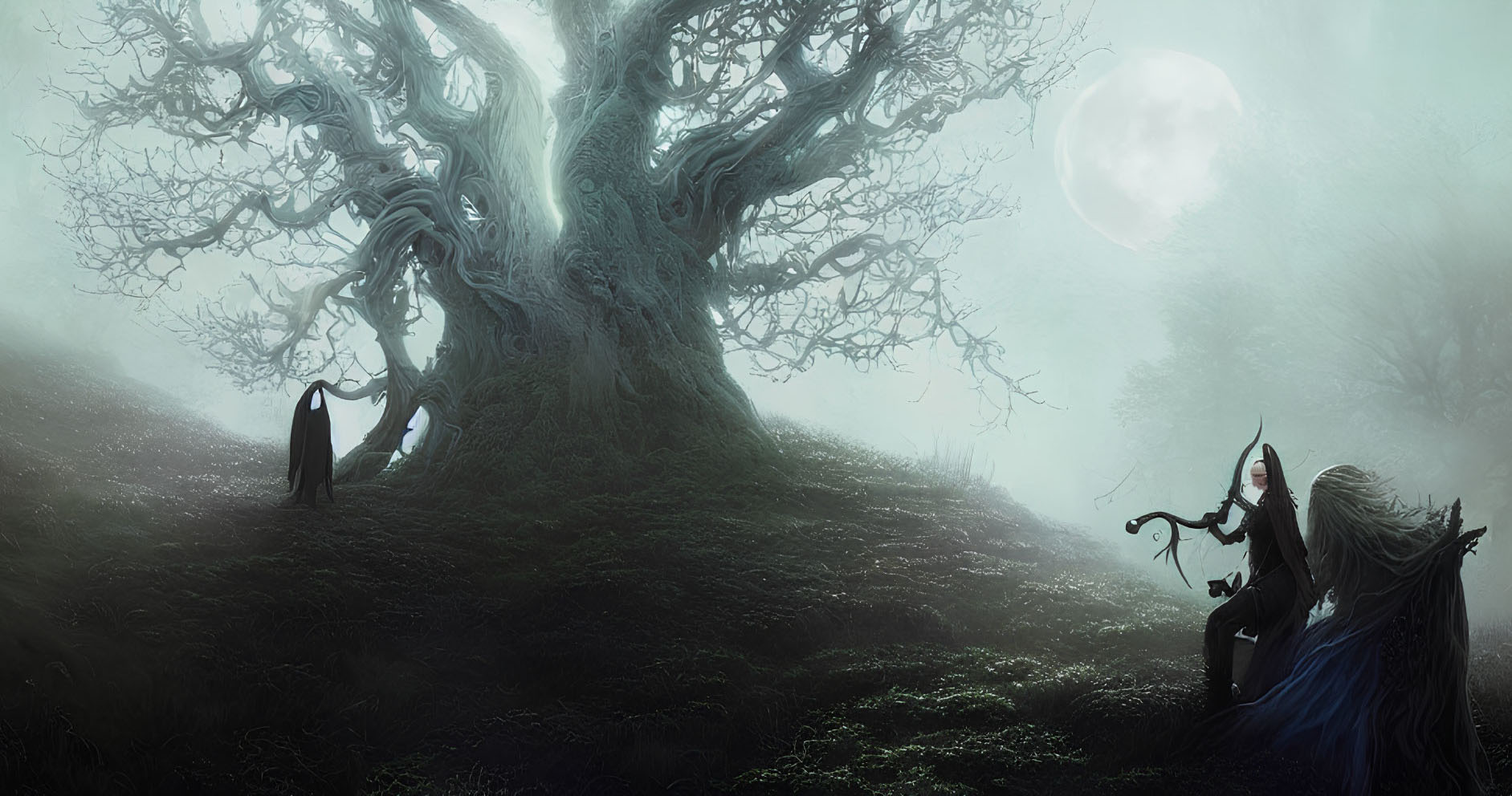 Inspiriert von den tollen Bilder die uns Licke beschert hat, dachte ich will auch mal ein düsteres Szenario heraufbeschwören. Nach einigen Versuchen in Midnight Cafe fand ich die richtige Mischung aus einer nebligen Vollmondnacht mit einem Baum den ich mit Clip Studio in die richtige Form brachte. Das ist mal ganz was anderes als ich sonst so mache. Die Hexen sind ebenfalls ein AI Produkt verbessert mit ein paar Strokes von mir. Daraus entsprungen ist The real Witchtree als Illustration von Wesneday's Buch mit gute Nacht Geschichten. ![]()