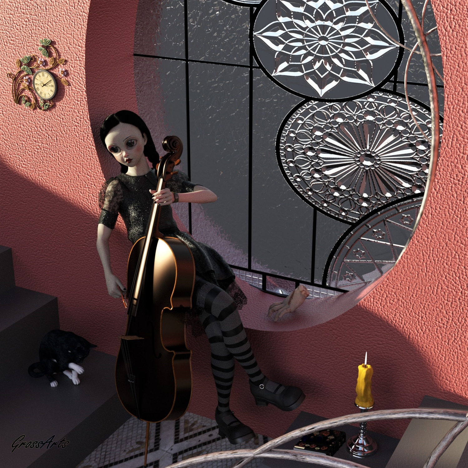 Die Stellung am Cello ist etwas seltsam. Willst du sie nicht lieber spielend darstellen?