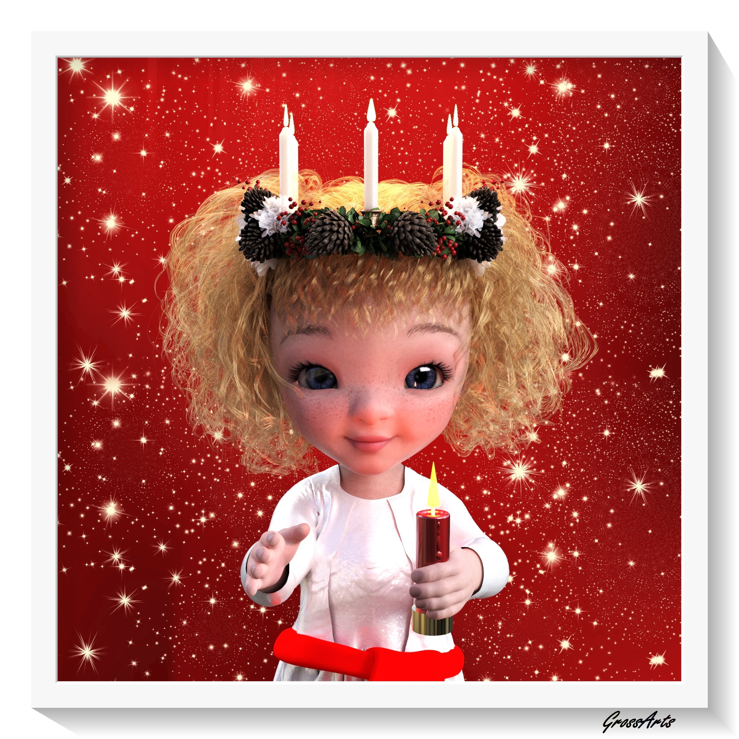 Süß! Ein Adventsmädchen.... hoffentlich tropfen die Kerzen beim Kopfschmuck nicht.