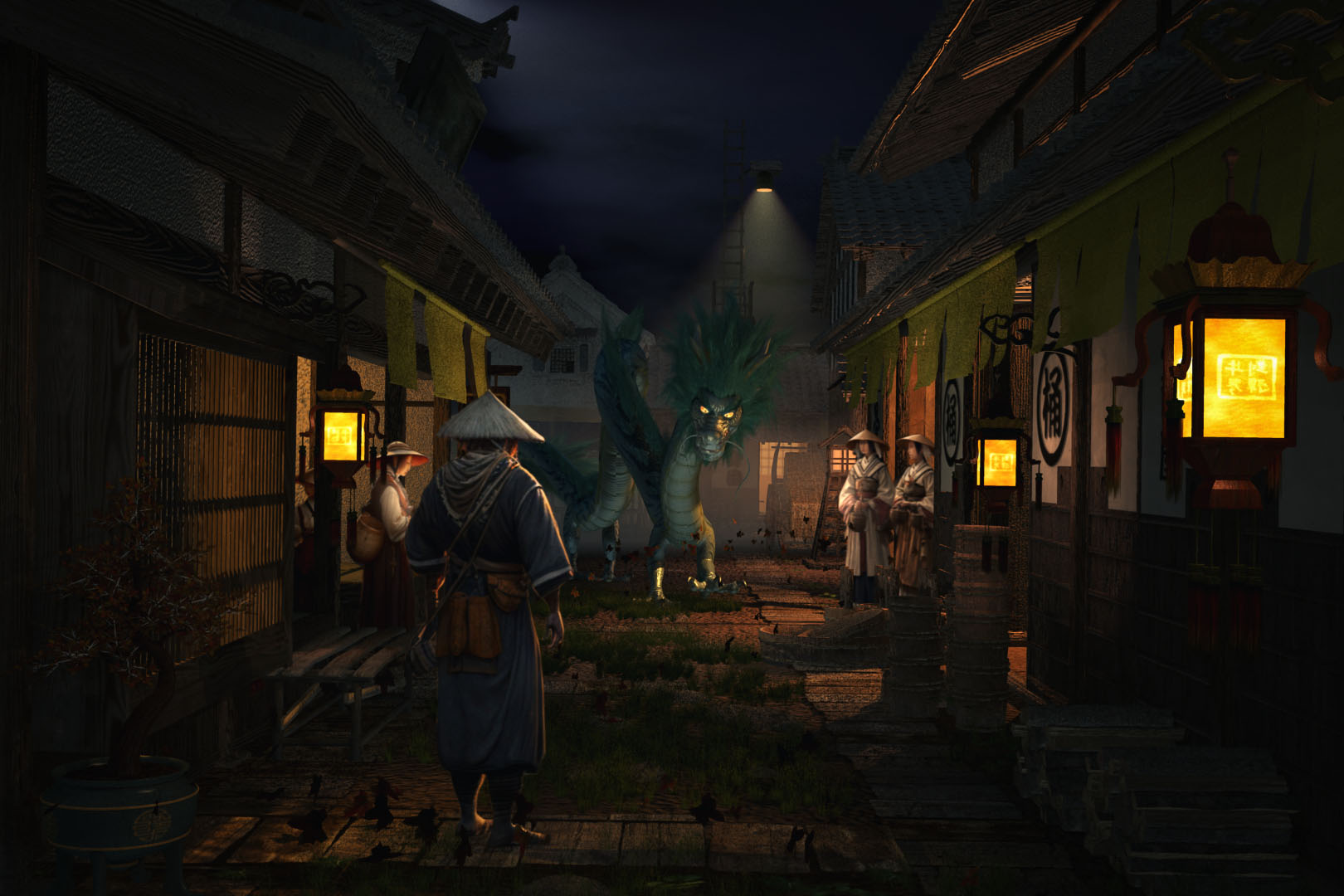 in Hellen Mondnächten erscheint dann und wann der Drache Long Shiosaki in einem Dorf. Er ist wohl bekannt und gerngesehen Er bringt das Glück ins Dorf. Wenn eine junge Frau ihm zugetan ist verwandelt er sich auch in einen jungen Prinzen......