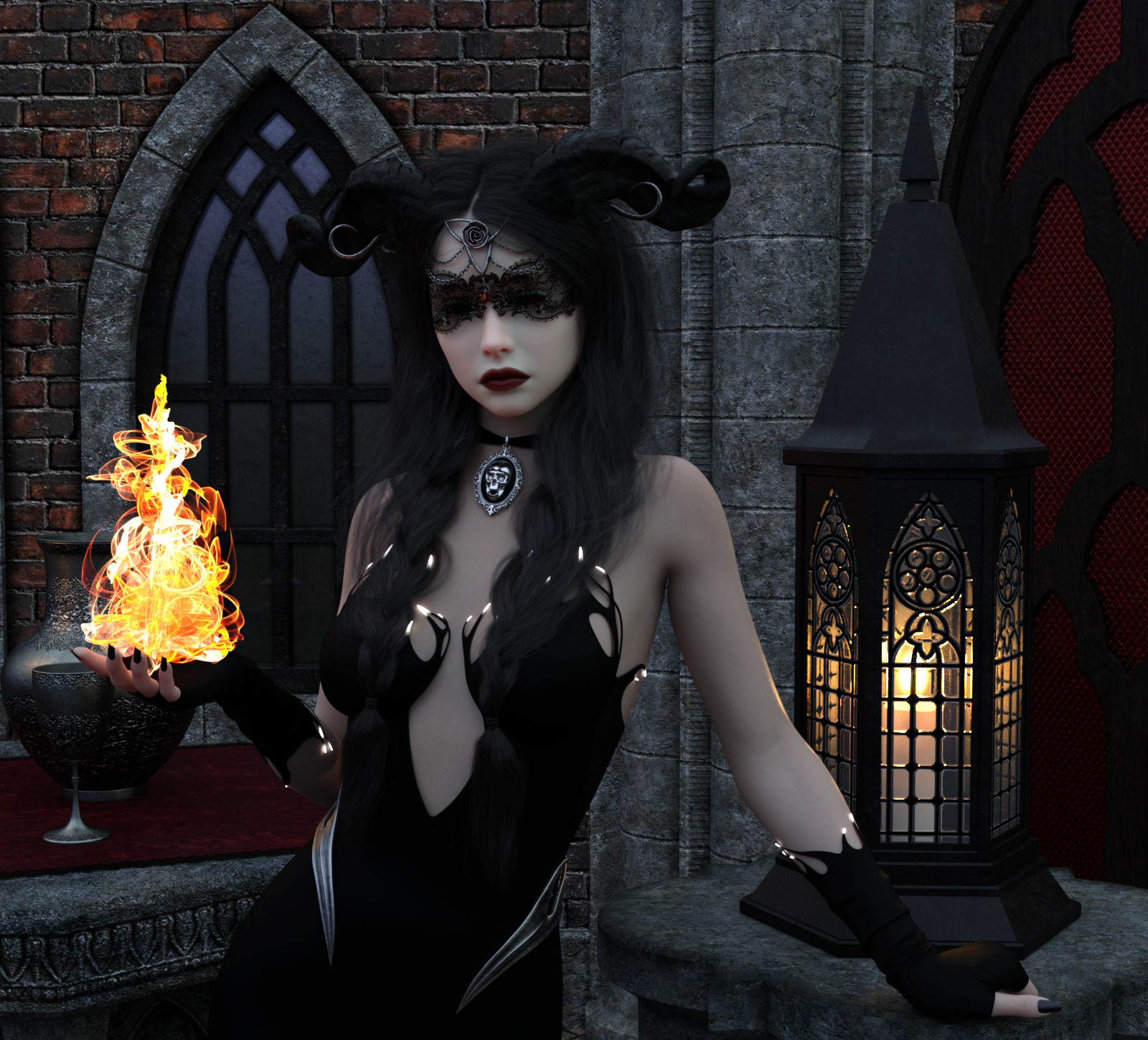 Bei den Hörnern dachte ich zuerst, dass sie die mit ihren Haaren umwickelt bzw umflochten hat, aber bei genauerem hinsehen könnten die auch mit einer Art Fell bewachsen sein...