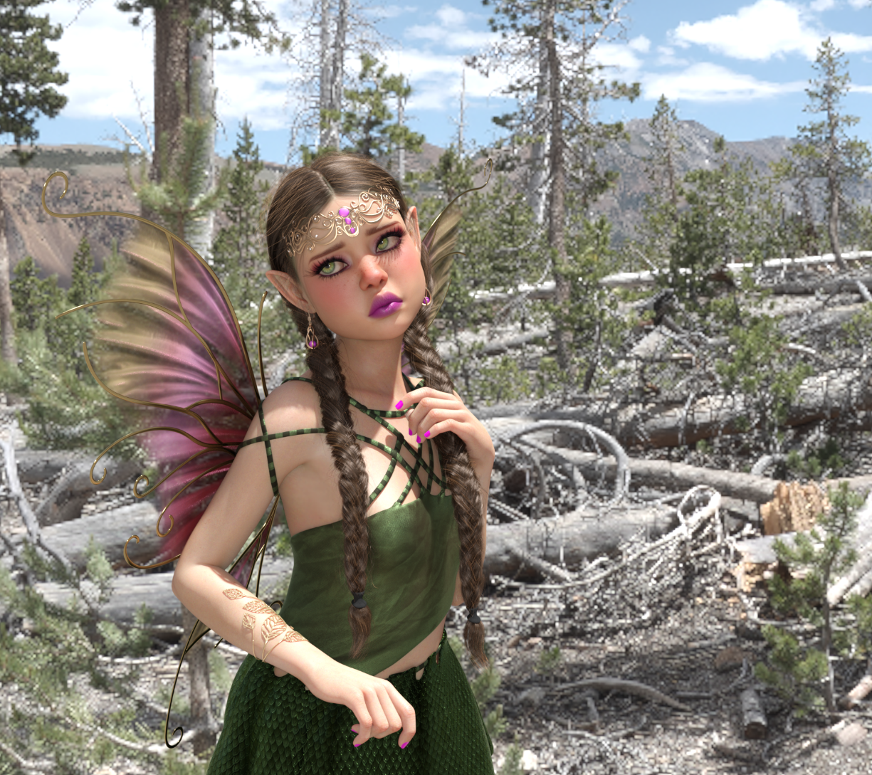 In diesem Fall fangen schon die Flügel an zu schrumpfen, weil sie durch die Trockenheit vertrocknen und somit kann sie nicht mehr fliegen. Im nächsten Bild aber, sind ihre Flügel wieder normal, weil ihr Lebensraum sogar noch schöner ist. Ich lasse keine Elfen sterben.