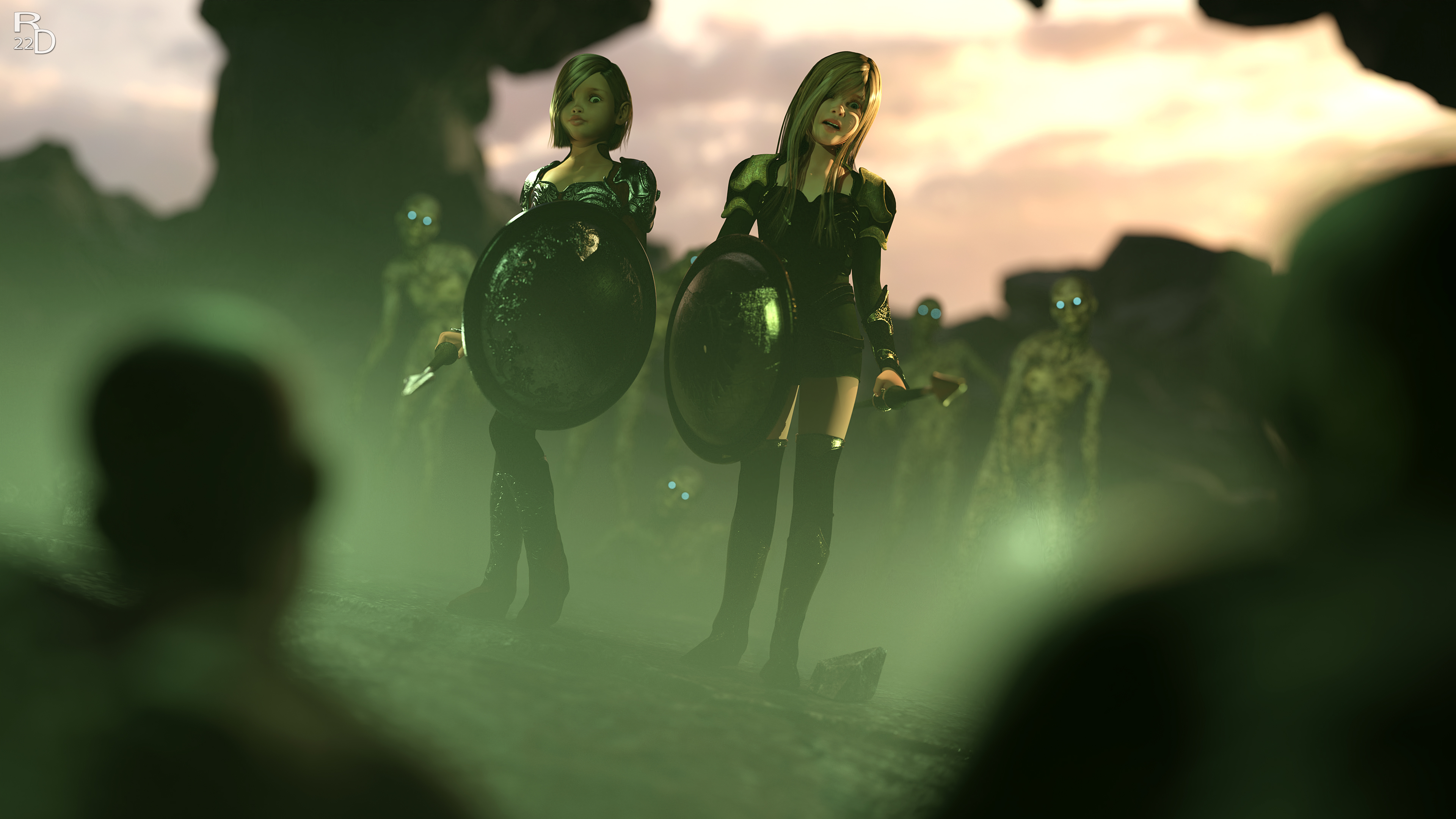 • :/ Es könnte ja auch sein, das die Zombies mit den blauen Augen von einem anderen Stamm sind und sich mit denen aus dem Vordergrund so gar nicht verstehen und die beiden Mädels einfach nur an einer recht unpassenden Stelle stehen?! 8) Oder gleich kommt ein Drache da vom Zahnarzt und die machen ein leckeres BBQ? ...wo habe ich nur meine Tabletten hingelegt? :huh:
