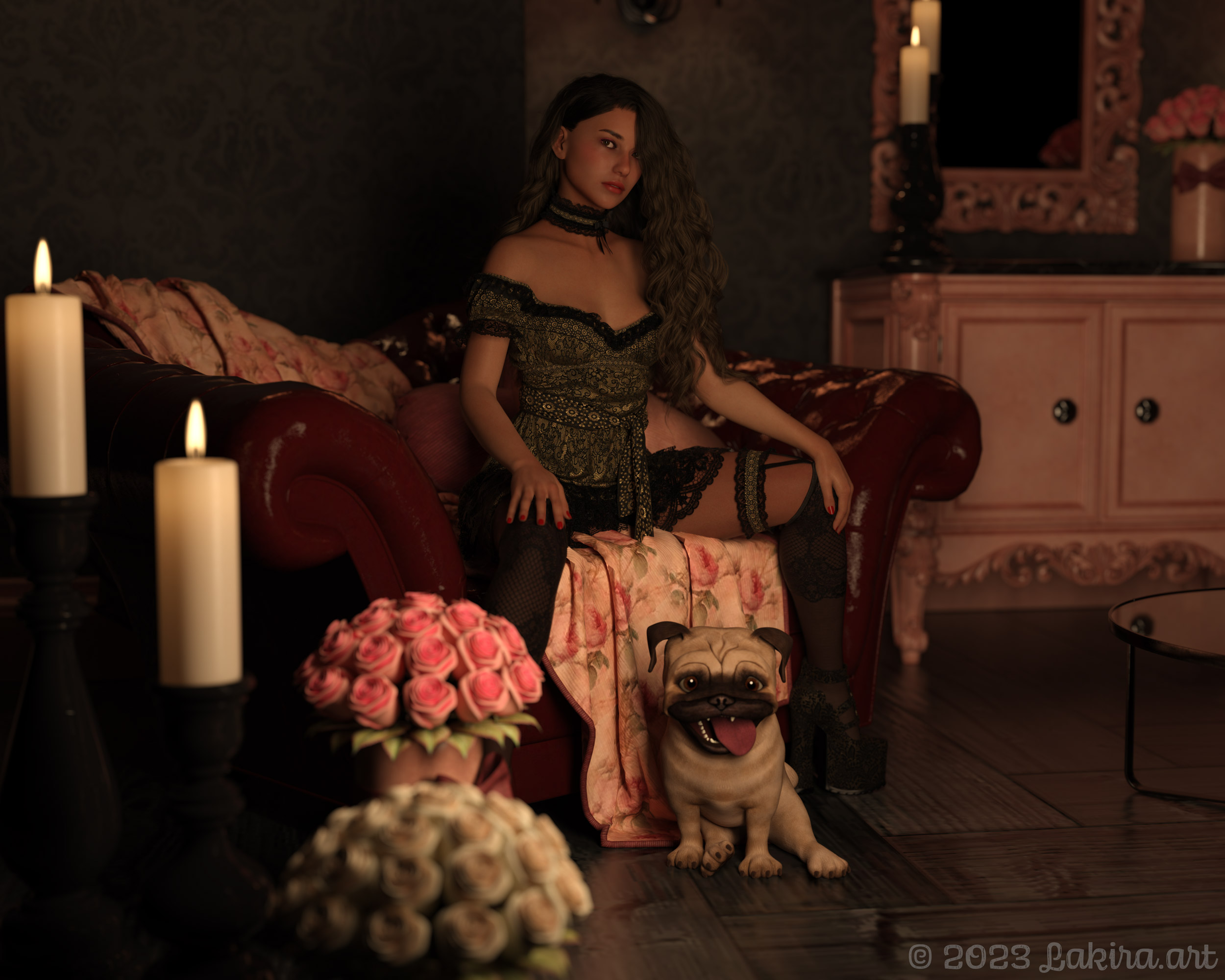 Im Bildhintergrund steht eine Anrichte mit massiven Türen. Dort könnte man Puggy oder sich selbst im Notfall verstecken, denkt der Fotograf.