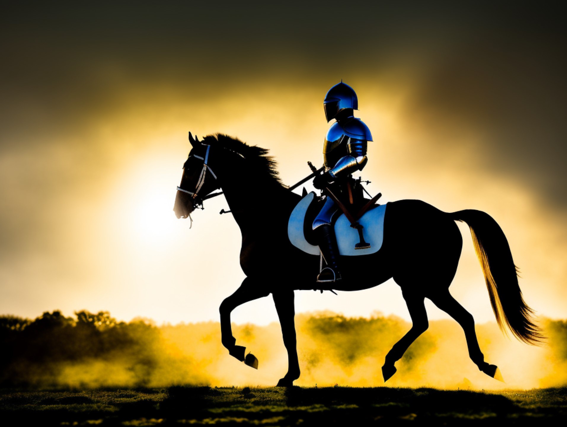 Du glaubst nicht wieviele Versuche nötig waren um es so hinzubekommen. Man muss den Prompt immer anpassen bis es gut ist. Es hat aber noch immer Fehler. Der Pferdesattel ist ein normaler Reitsattel wie man es kennt anstelle einem mittelalterlichen Sattel. Auch das Zaumzeug stimmt nicht für ein Schlachtross aus dieser Zeit. Online hätte ich viele Coins verbraucht bis es richtig ist. Deshalb verwendete ich die lokal installierte KI von Stable Diffusion. Dann wird es auf der Grafikkarte berechnet. Die Ergebnisse kommen jedoch nicht an MJ heran, aber dafür ist es kostenlose Open Source Software. Was mich mehr interessiert hat ist die KI für Kurzgeschichten. ich habe nur eingegeben "Ein Ritter zieht in die Schlacht". Der Rest hat ChatGPT gemacht. Weder das Bild noch die Kurzgeschichte habe ich nachbearbeitet. Ehrlich gesagt wollte ich es halt einfach mal ausprobieren beides zu verbinden.Was jetzt noch fehlt ist KI generierter Sound dazu, dann hätte ich alle KI Generatoren ausprobiert. Doch ich bin kein Musiker