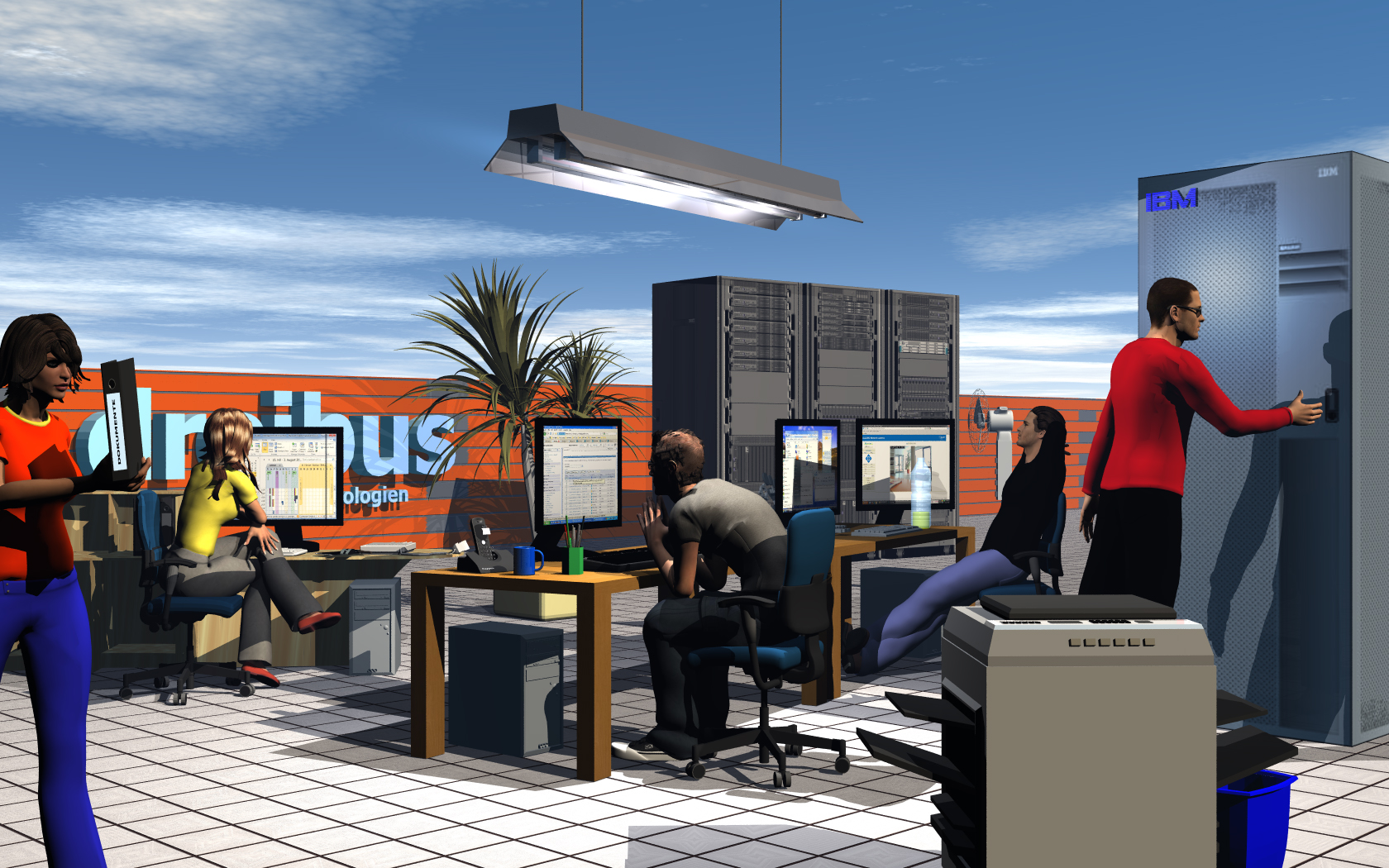 Ein Openairbüro, wozu brauchs dann noch einen Ventilator? Ein Rätsel auch, wie ist die Lampenaufhängung?