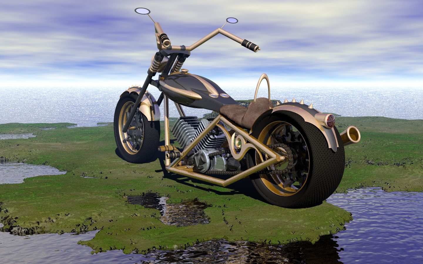 Hab mal wieder versucht was komplexes in Bryce zu modellieren und es ist ein Chopper geworden. Hat insgesamt ca.15 Stunden gedauert.