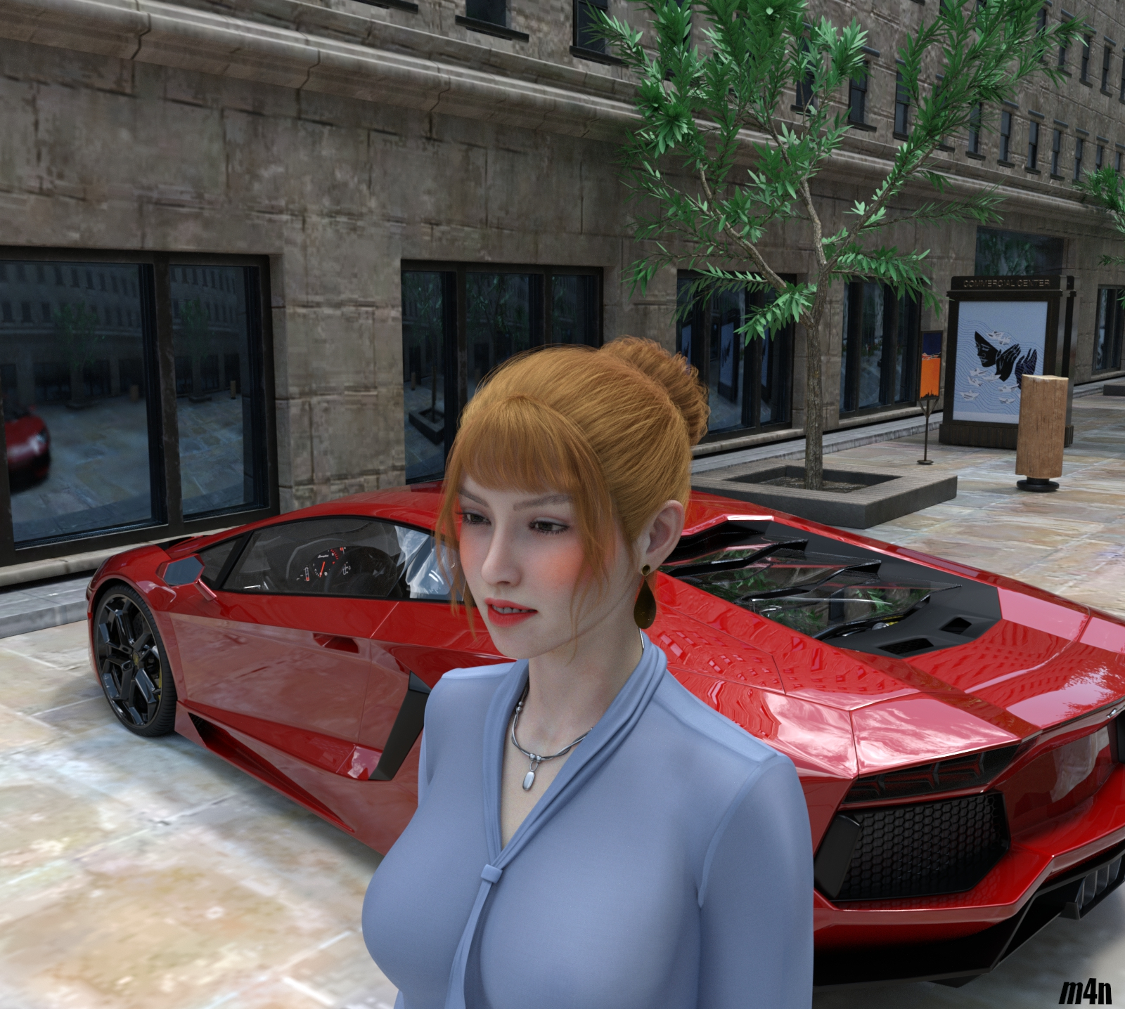 Das Bild hat 2 Stunden gerendert, dafür spiegeln sich die Hochhäuser im Lack.