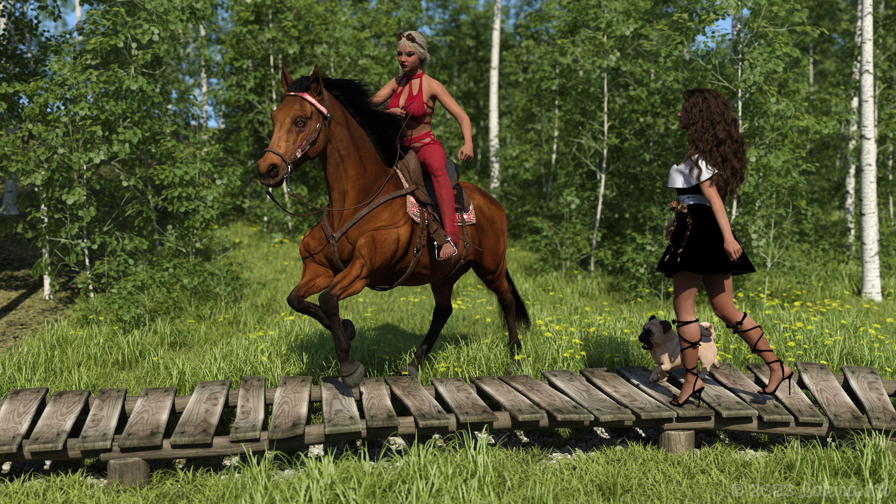 Das schöne Wetter und die Natur genießen. Bis so ein Pferd samt Reiterin den Weg der beiden gekreuzt hat ... :evil::evil::evil: .