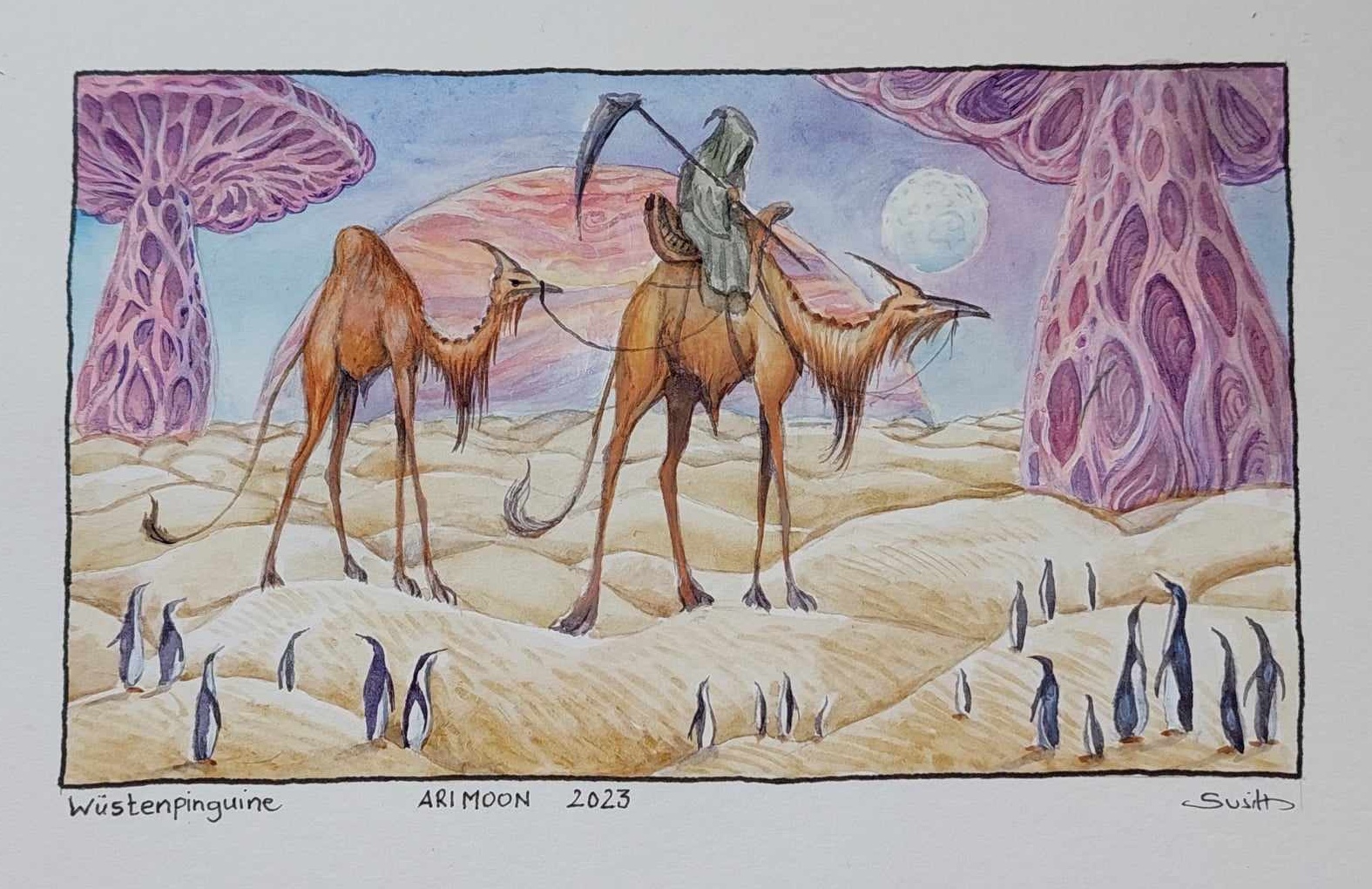 Hier noch eine weitere Postkarte aus dem Urlaub. Die Wüsten von New Australicus auf Ari Moon sind ein Reiseziel, welches noch nicht sehr touristisch erschlossen ist. Das liegt unter anderem auch an den dort Lebenden Nomaden, die Besuchern gegenüber nicht sehr aufgeschlossen sind.