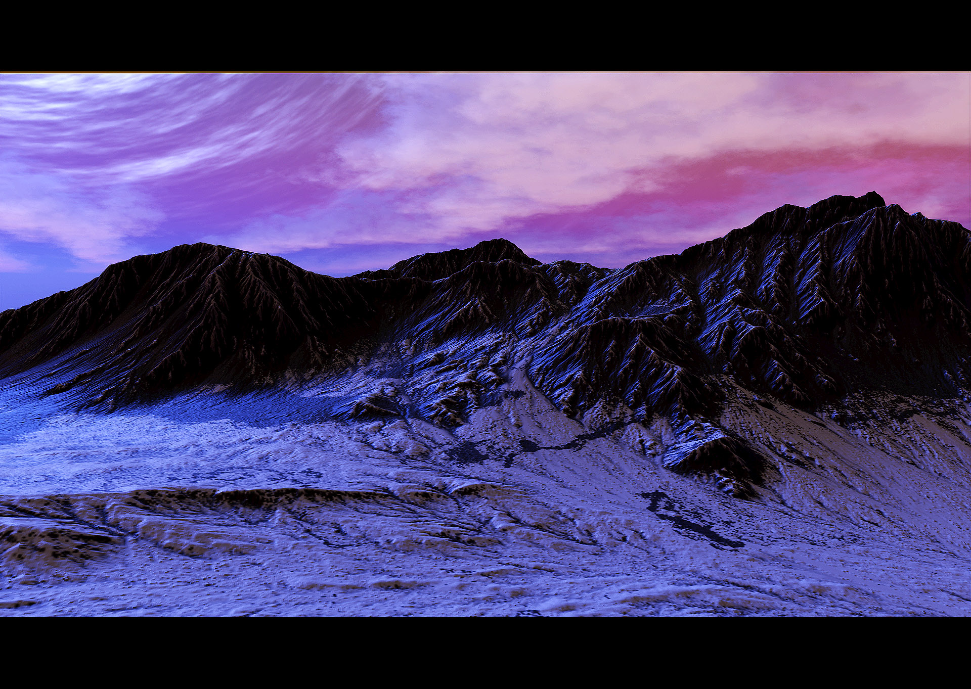 Womit hast Du die Berge gemacht? - Das sind interessante Formen an den Hängen, die mit den Standardfunktionen von Blender soweit ich weis, so nicht zu machen sind. Dafür muss dann schon so'n bisschen was kombiniert werden.