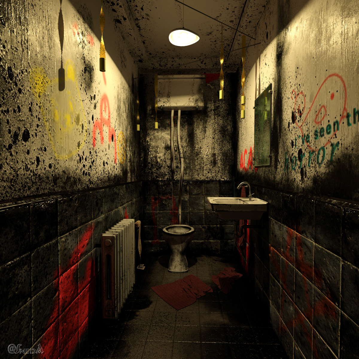 Aber für ein Themen-Hotel/Motel eine makabre Geschäftsidee, wenn man es mit zentimeter-dickem Klarlack überzieht, dessen Oberfläche immer klinisch-rein unter Schwarzlicht-Bestrahlung gesäubert wird. *$$$*
