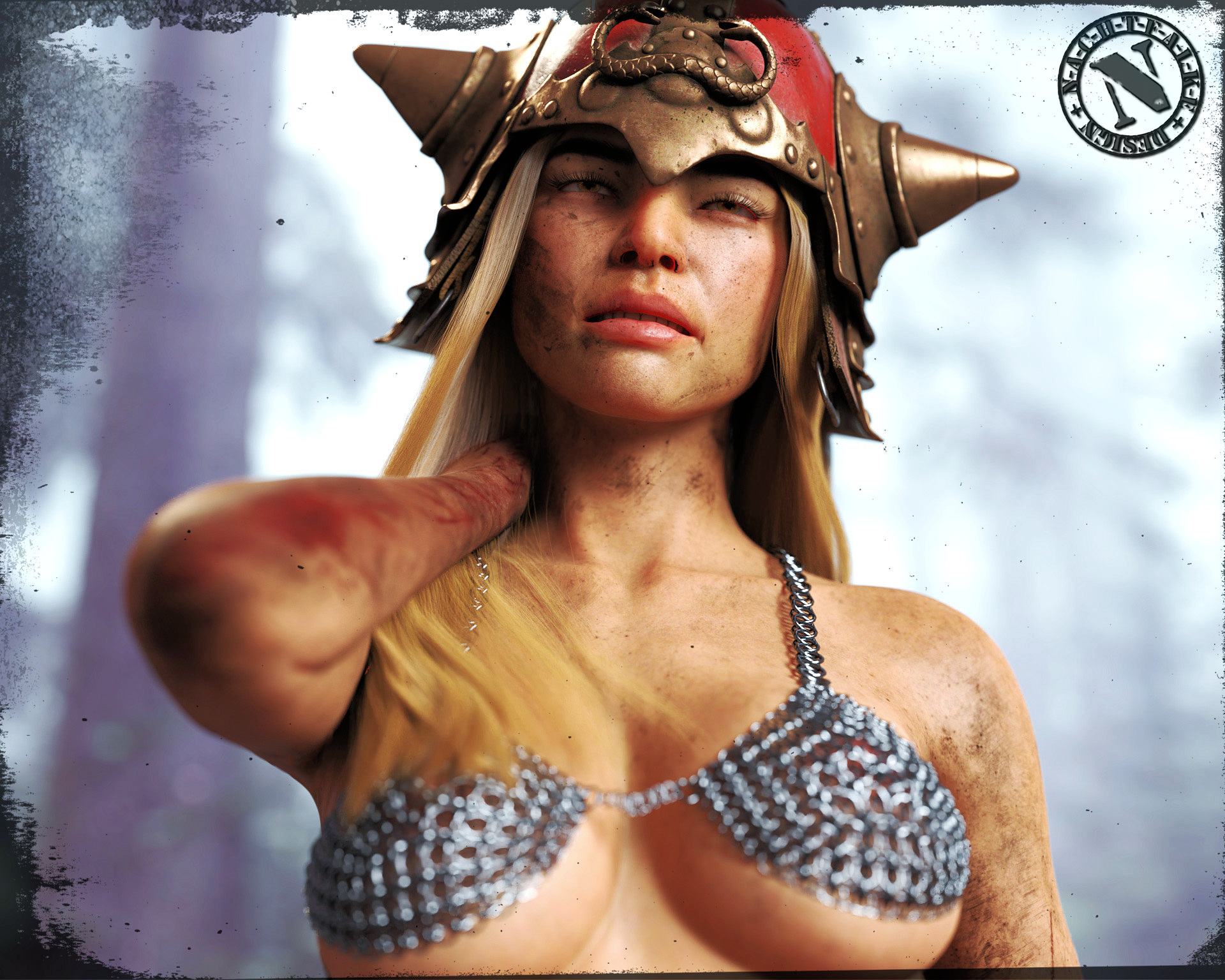 Nach ihrem triumphalen Sieg über eine Handvoll Orks, hatte die Kriegerin Freyja zahlreiche Blessuren davongetragen. Während sie ihre Hand an ihren schmerzenden Nacken legte, träumte sie von einem wohltuenden Schaumbad, das in der nächsten Taverne auf sie wartete.