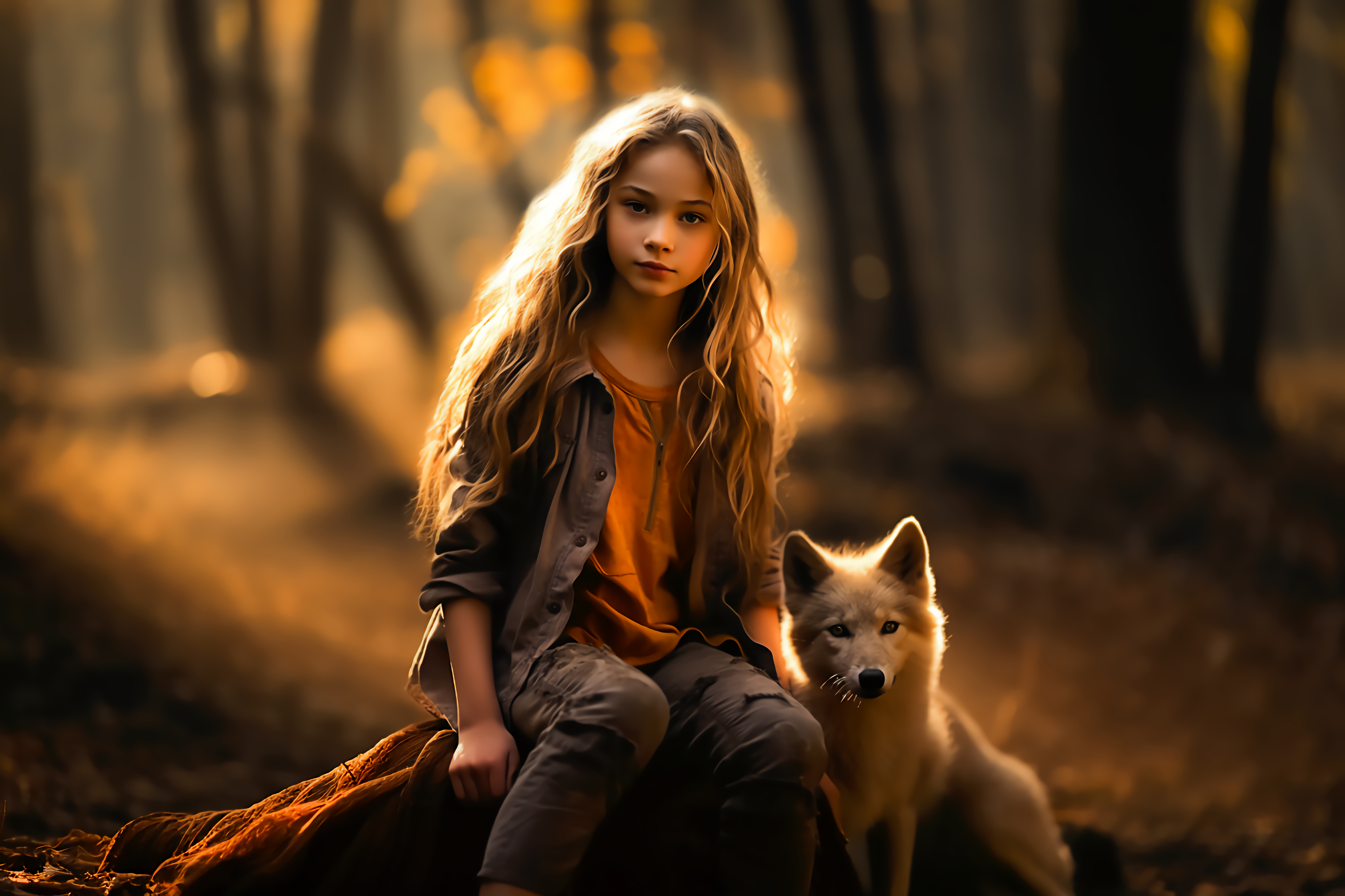 Habe mir gerade das Märchen dazu vorgestellt. Bei der Fuchsfee handelt es sich um die ältere Schwester von dem Mädchen im Bild, welches ihre jüngere Schwester vor den norwegischen Schneewölfen, die erst im weiteren Verlauf des Märchens in Erscheinung treten, beschützen möchte. Das hätte doch ein schönes und spannendes Märchen werden können.