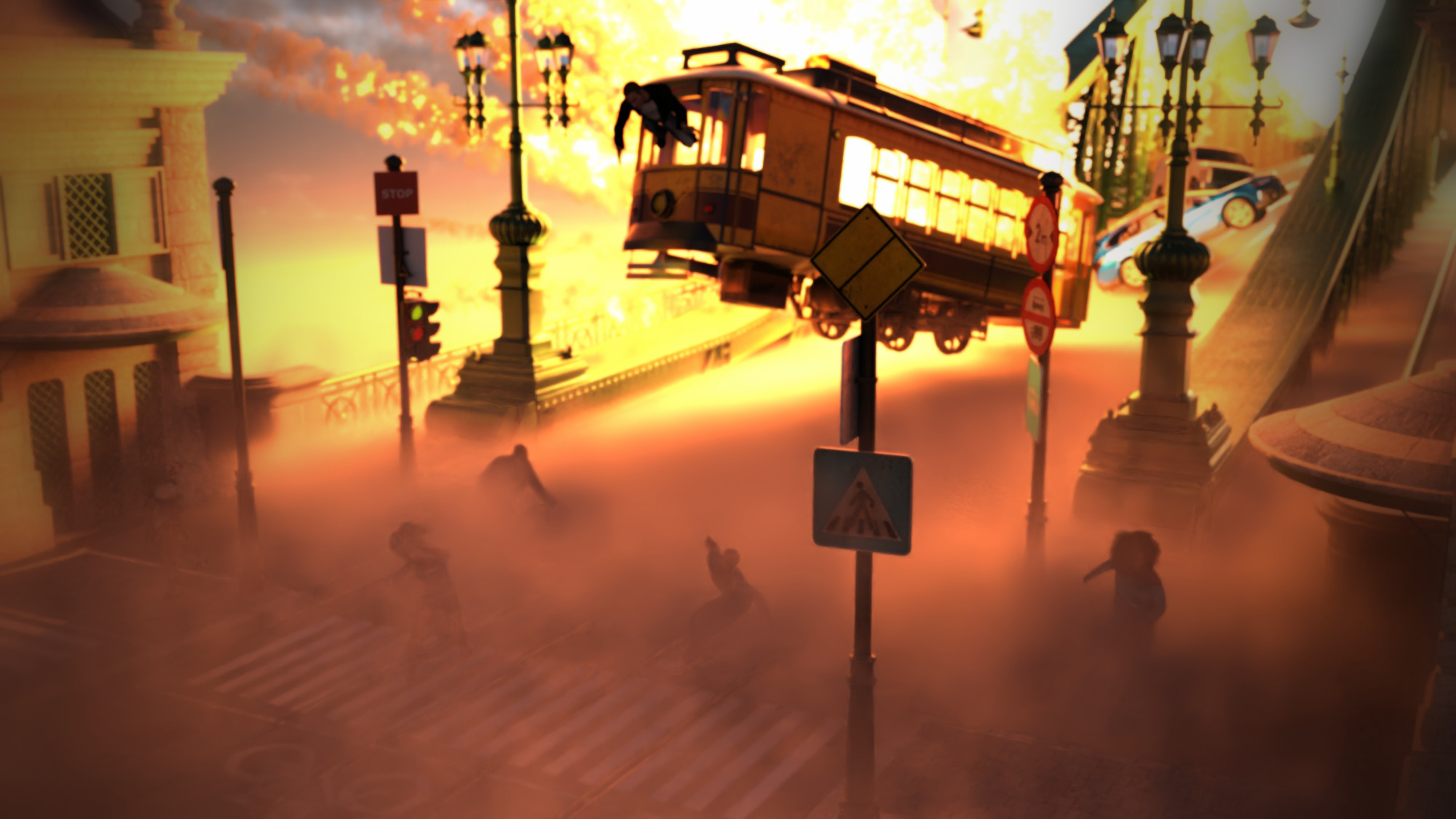 und Züge weggeflogen! (In den USA etwa 1920)