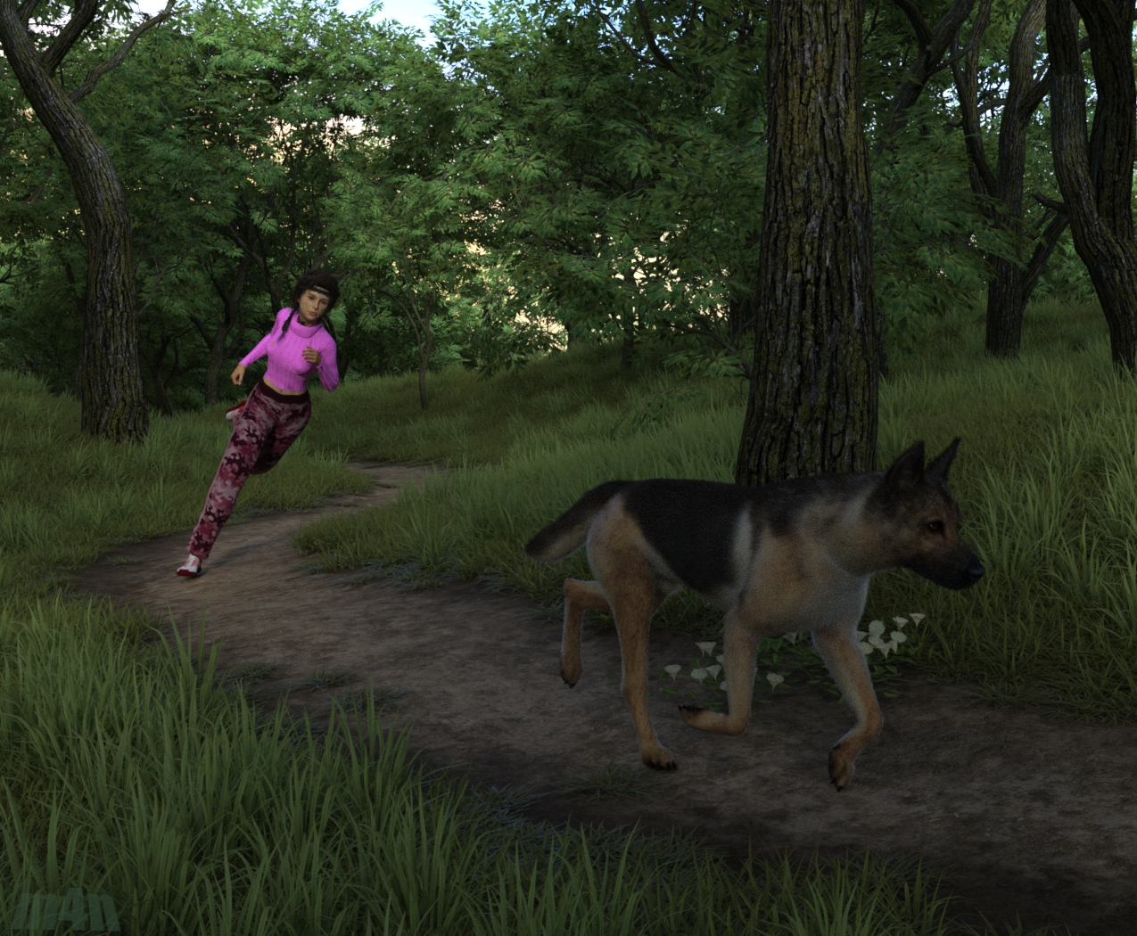 Sie rennt - er trabt.