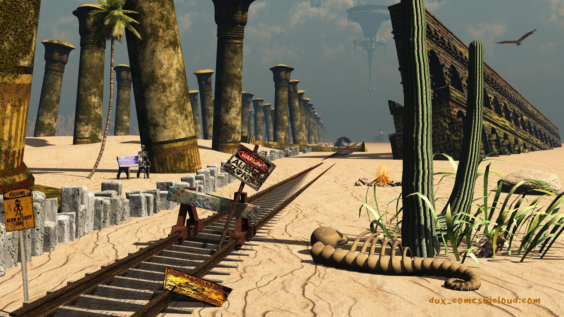 Sehr schön geworden - wäre noch etwas "glaubwürdiger", wenn du dich für nur eine Architekturform entschieden hättest (ägyptische Säulen in unmittelbarer Nähe zu einem Aquädukt? )