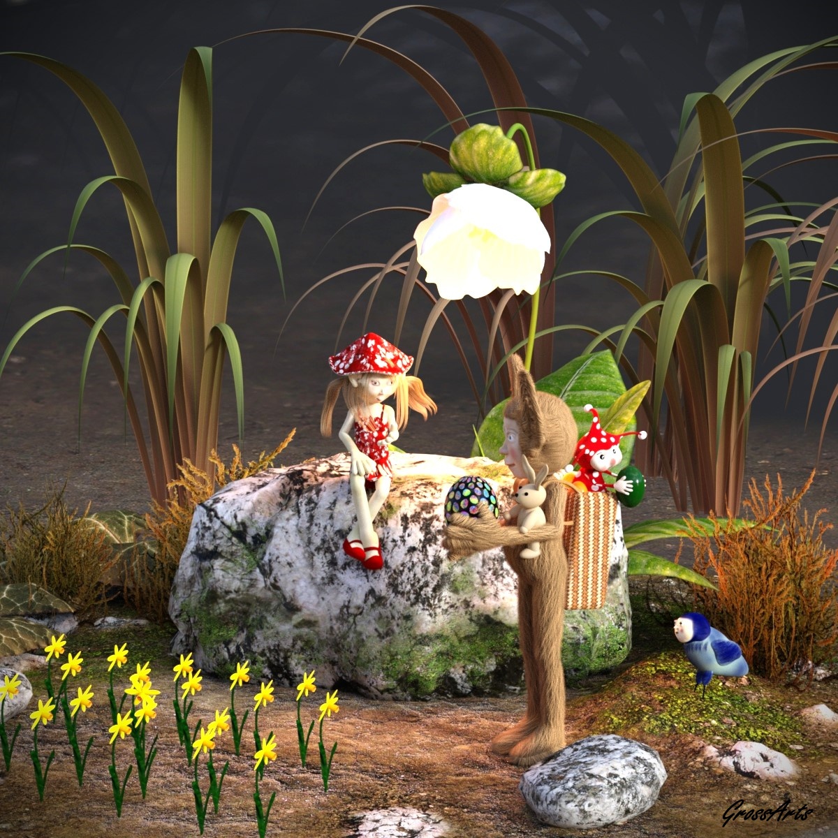 Gnobi der Hase beschenkt das kleine Elfchen, was macht der freche Fiete