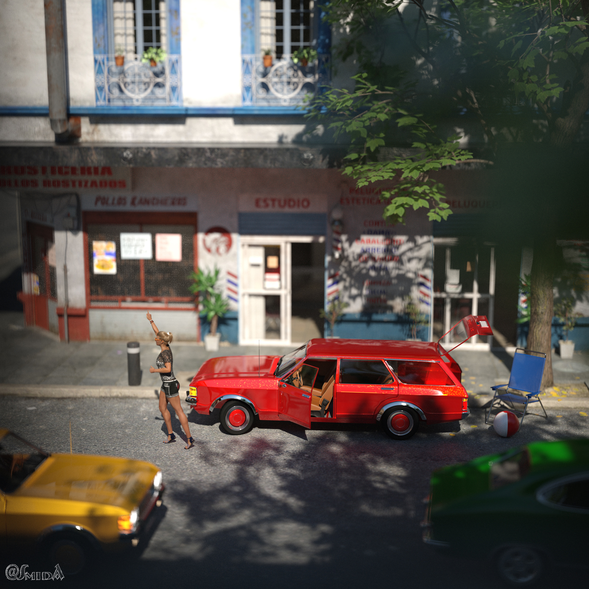 "Little Town Effekt" ist bewusst eingestellt und provoziert. Aber dass das Fahrzeug im Verhältnis zur Lady sooo klein daher kommt, passt eben nicht.