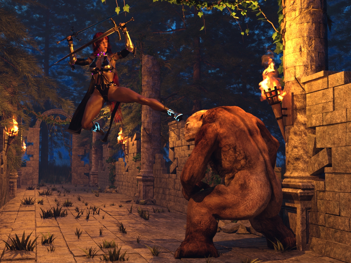 Und sehr sportlich, die Dame. Da hat der Troll oder was auch immer das für'n Wesen sein soll, jedenfalls nix mehr zu lachen.