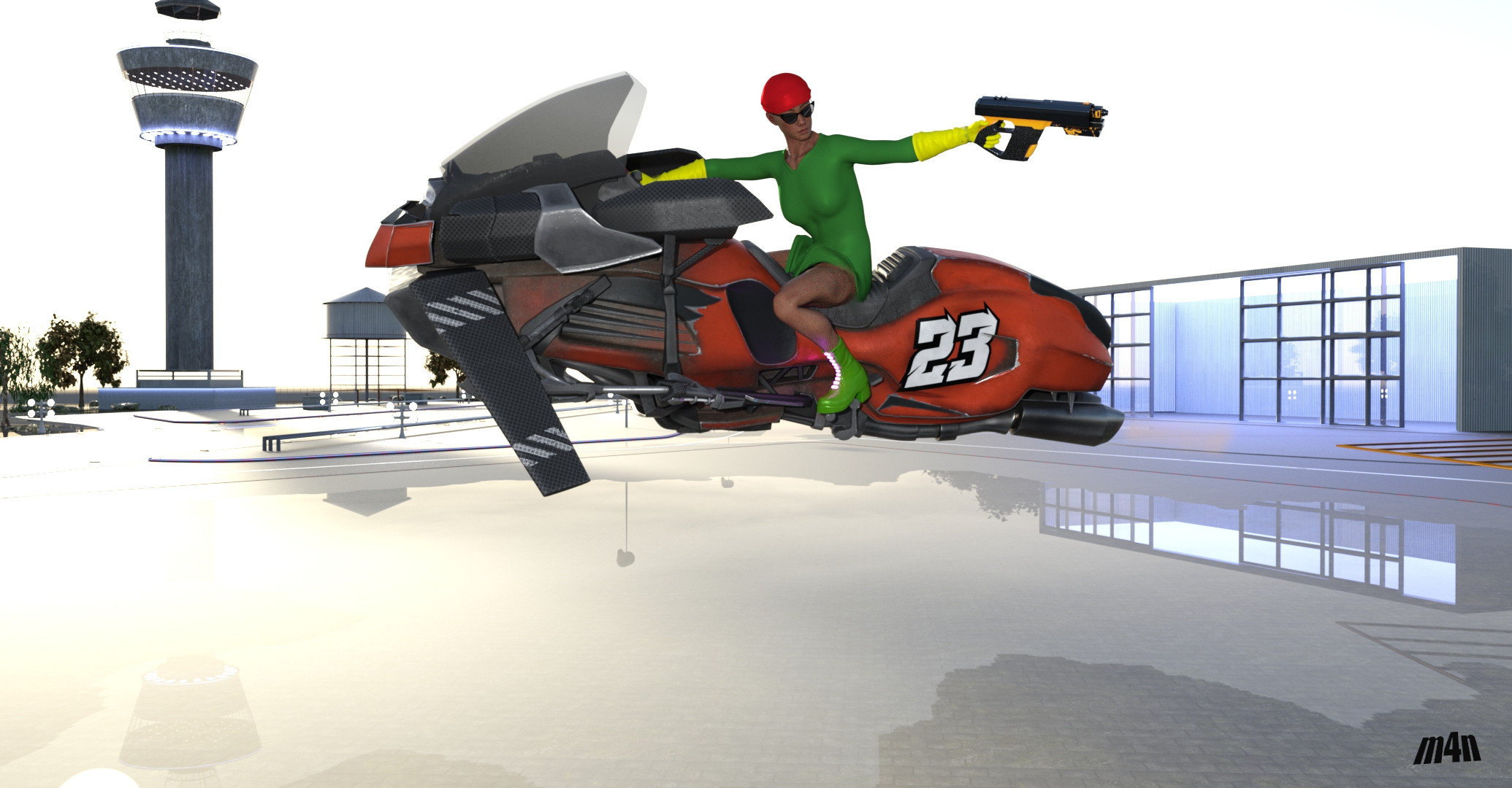 Die 23 kann senkrecht starten. Die Garage ist am Airport. Es gilt die strenge Regel der Flugüberwachung einzuhalten die da heißt Starterlaubnis.