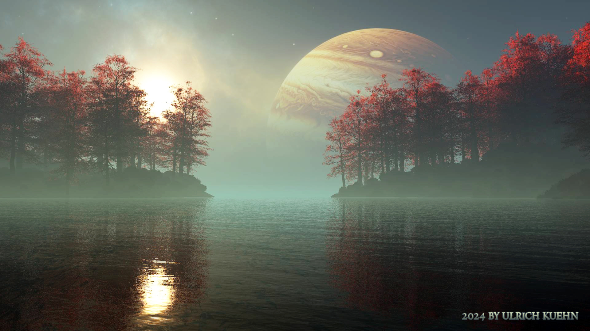 Der Jupiter, gesehen von einem seiner terraformten Monde.