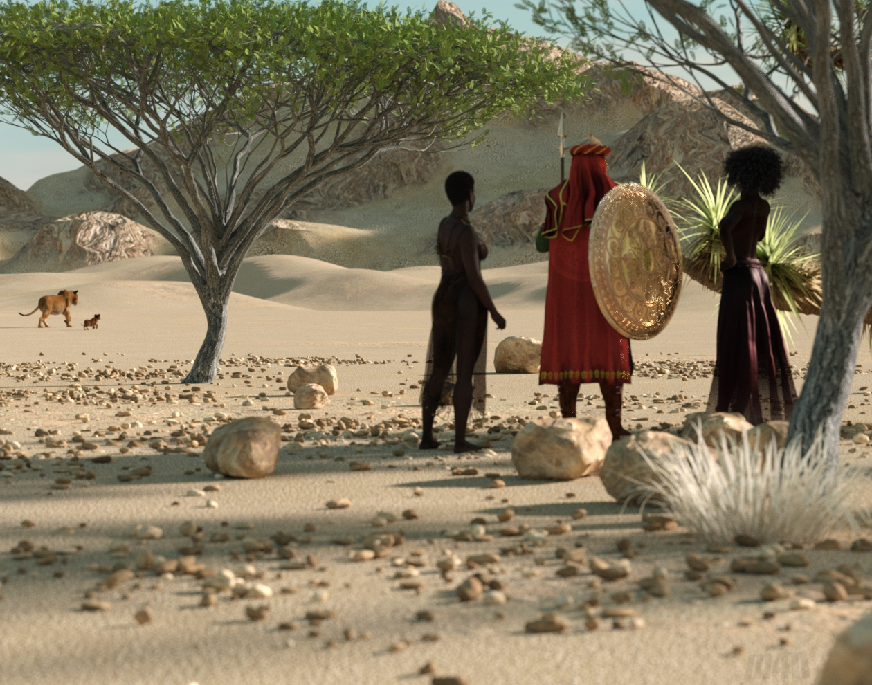 Die kleineren h aben die richtige Größe und Form für eine Steinschleuder, falls die Löwin oder der Typ in rot frech wird.