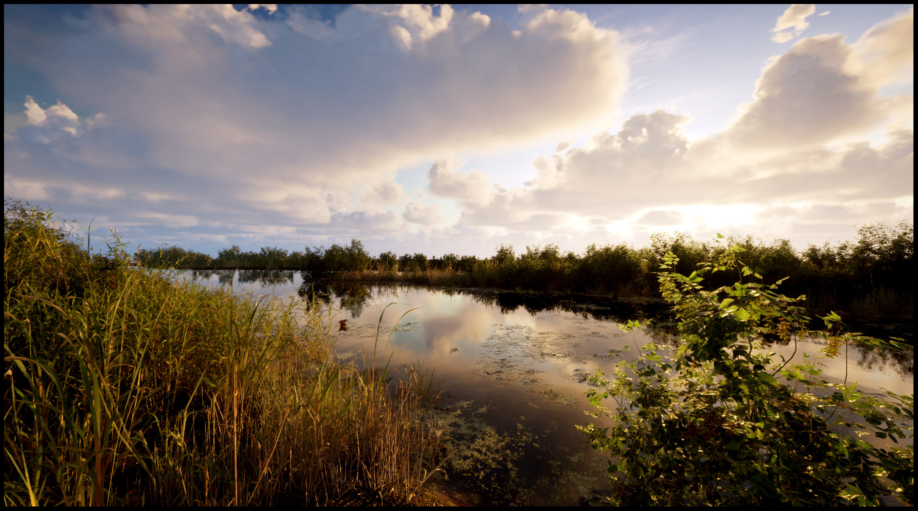 Da kann man es aushalten, außer es gibt zu viele Mücken. Ist da eine Quak-Ente im Wasser?