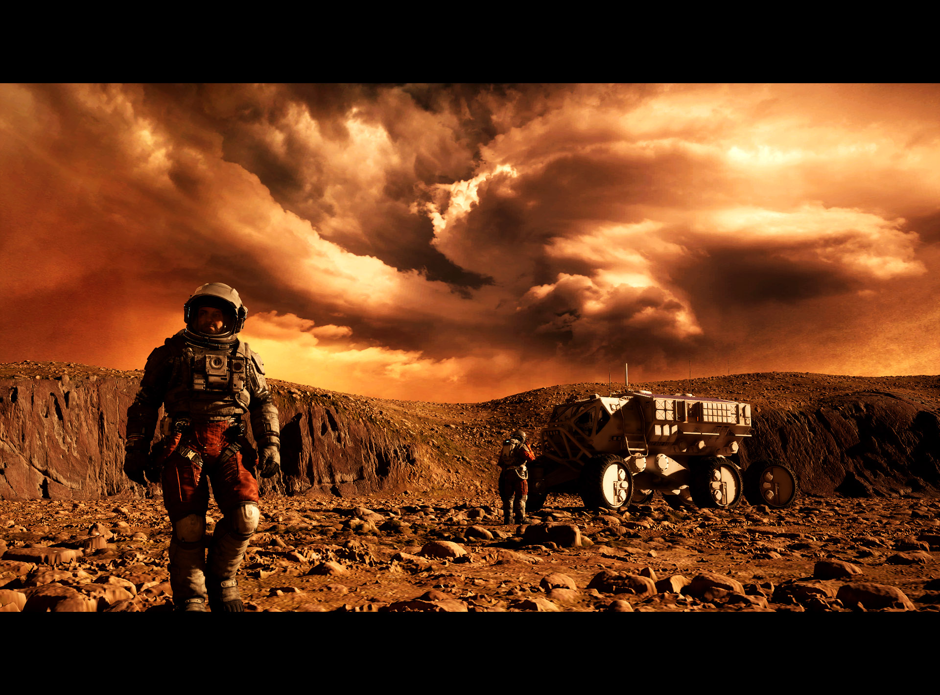 Die Farben und die Szene sehen aus echt aus wie aus einem Film ,da geht es um eine Marsmission.