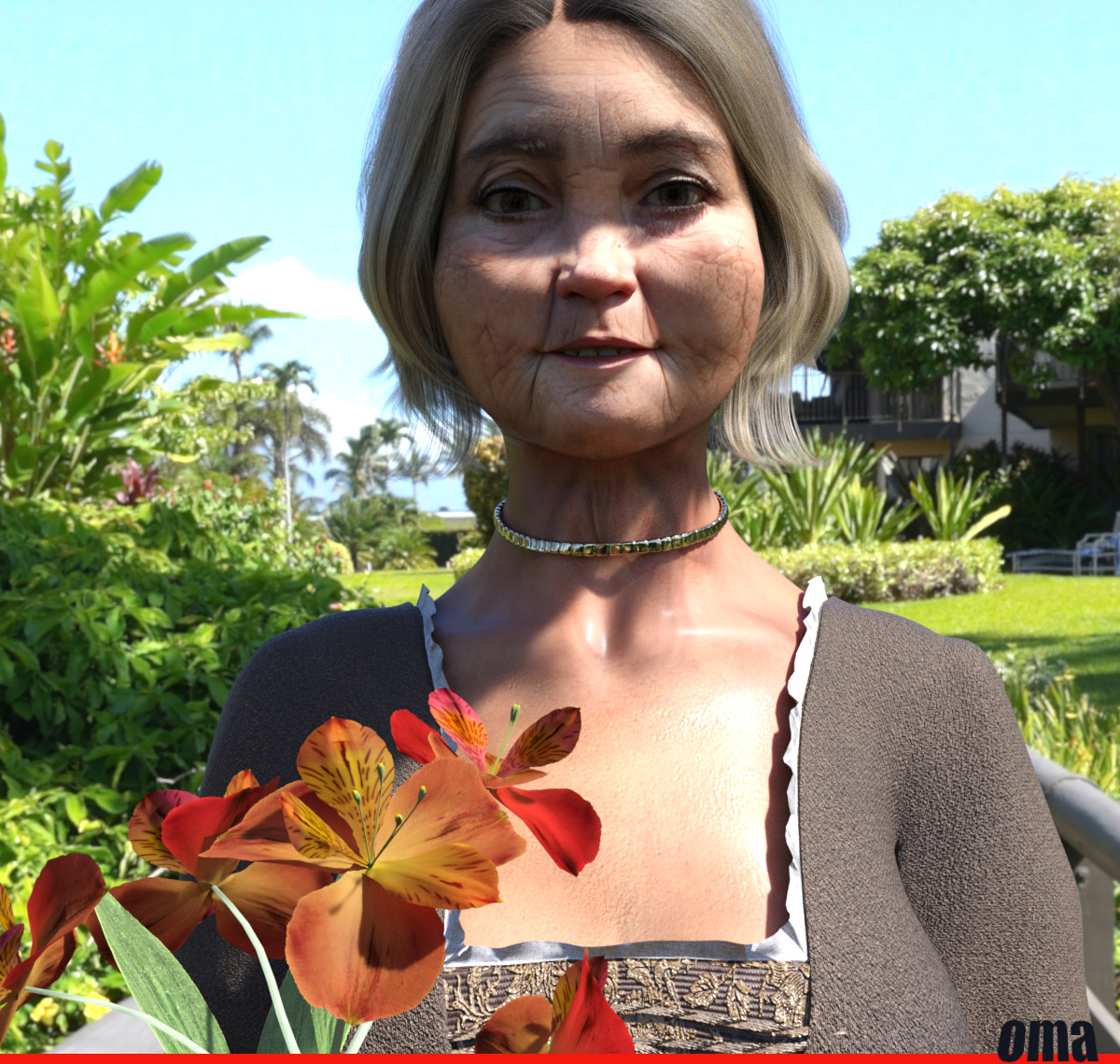 Da ist eine gewisse Altersdiskrepanz zwischen Gesichts- und Brusthaut, aber ansonsten schönes Bild.