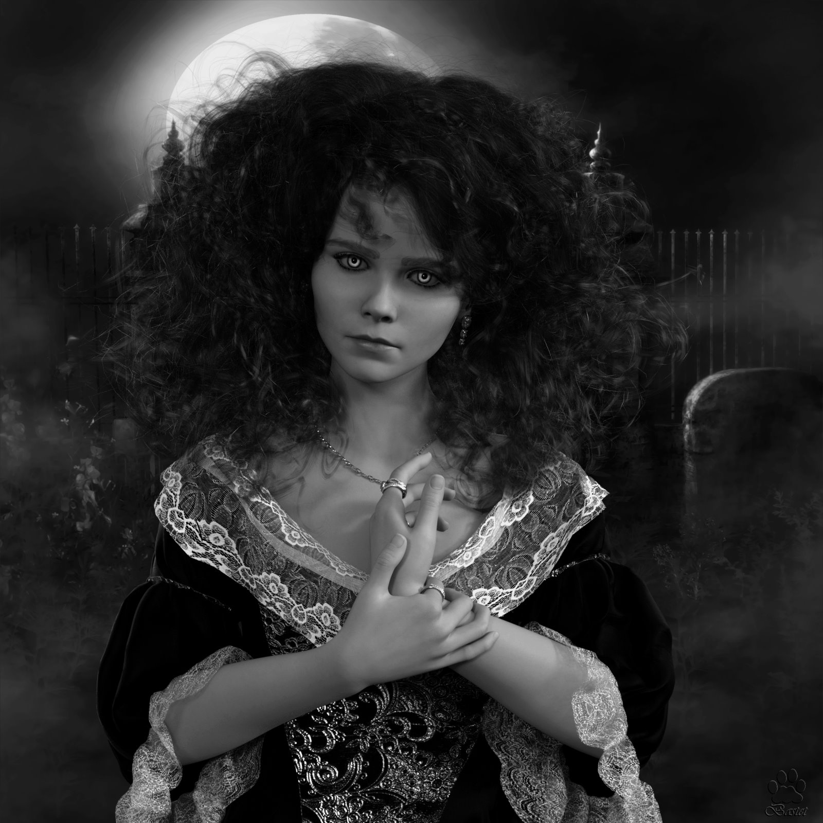 Was das Bild angeht: Gut gemacht, wie immer. Aber einen "unschuldigen Blick" würde ich der Dame nicht unterstellen. Eher irgendwas hinterlistiges. Kann aber auch sein, dass das an der Art der Augen liegt, die so einen krassen Gegensatz enthalten.