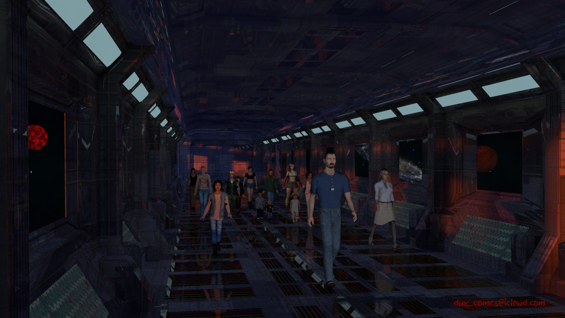 Deine Freundin Pandora entpuppt sich als äusserst wertvoll. Sie kennt einige Lager in denen grosse Mengen an Nahrungsmitteln gelagert sind. Wir sind jetzt auf dem Weg unsere leiblichen zwei Kinder aus der Schulkolonie abzuholen. Ich habe Kontakt mit der Station Mercury Alto aufgenommen. Unseren Kindern geht es gut. Sie lernen und von den Unruhen bekommen Sie nichts mit. Auf dem Photo siehst Du mich mit einigen der Geretteten, zwei Tage nach dem Vorfall auf Proxima Alpha.